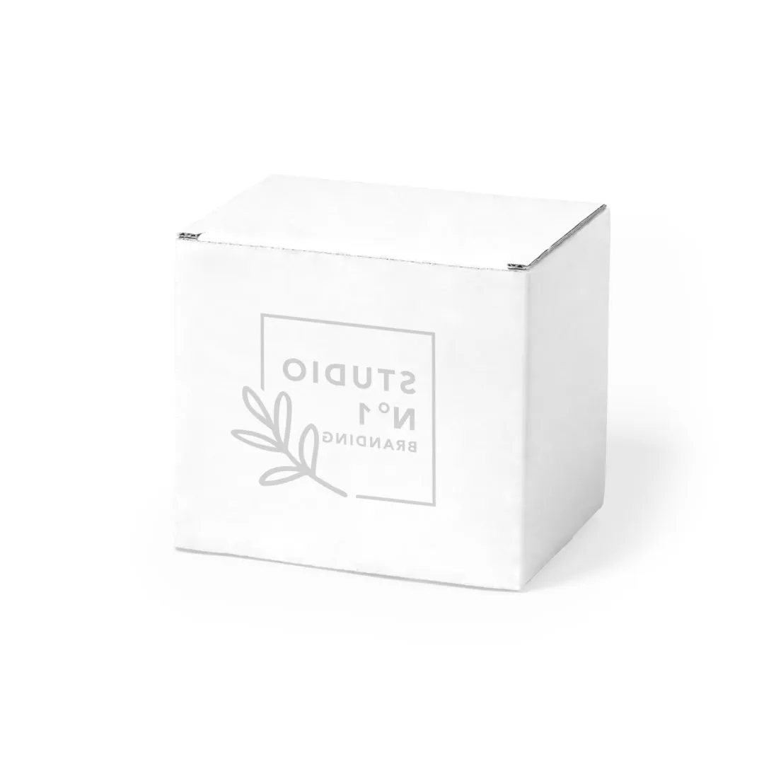 Caja de presentación especialmente diseñada para tazas. Tamaño 12×10,6×9 cm y fabricada en cartón reciclado corrugado de acabado blanco. En línea con la tendencia del mercado hacia la sostenibilidad integral del regalo, ofreciendo soluciones de origen reciclado con el fin de ayudar a la mejora y conservación de nuestro planeta.