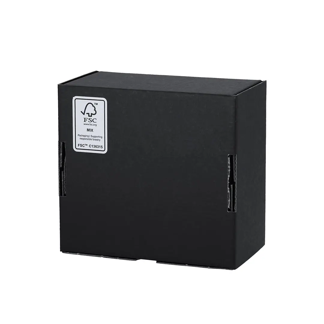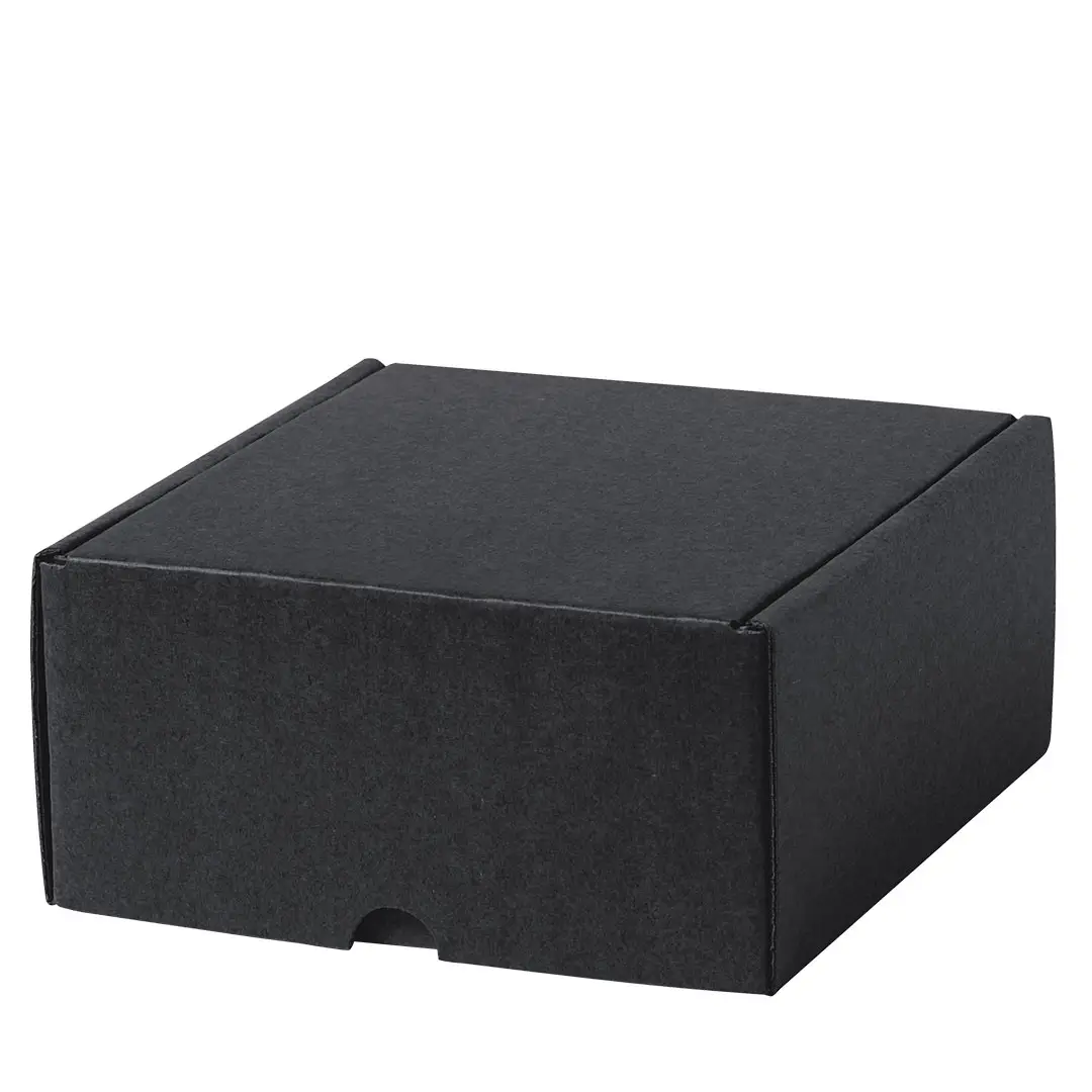 Caja de presentación tamaño S, fabricada en cartón reciclado corrugado en color negro. En línea con la tendencia del mercado hacia la sostenibilidad integral del regalo, ofreciendo soluciones de origen reciclado con el fin de ayudar a la mejora y conservación de nuestro planeta.