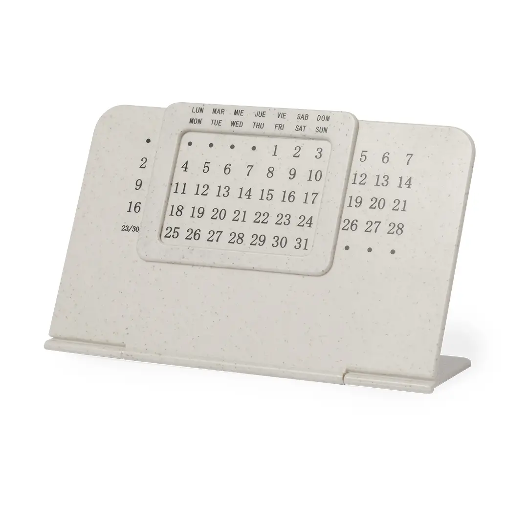 Calendario perpetuo fabricado en caña de trigo. Con soporte plegable.La caña de trigo fomenta la utilización de materias primas naturales, reduciendo así las emisiones contaminantes.