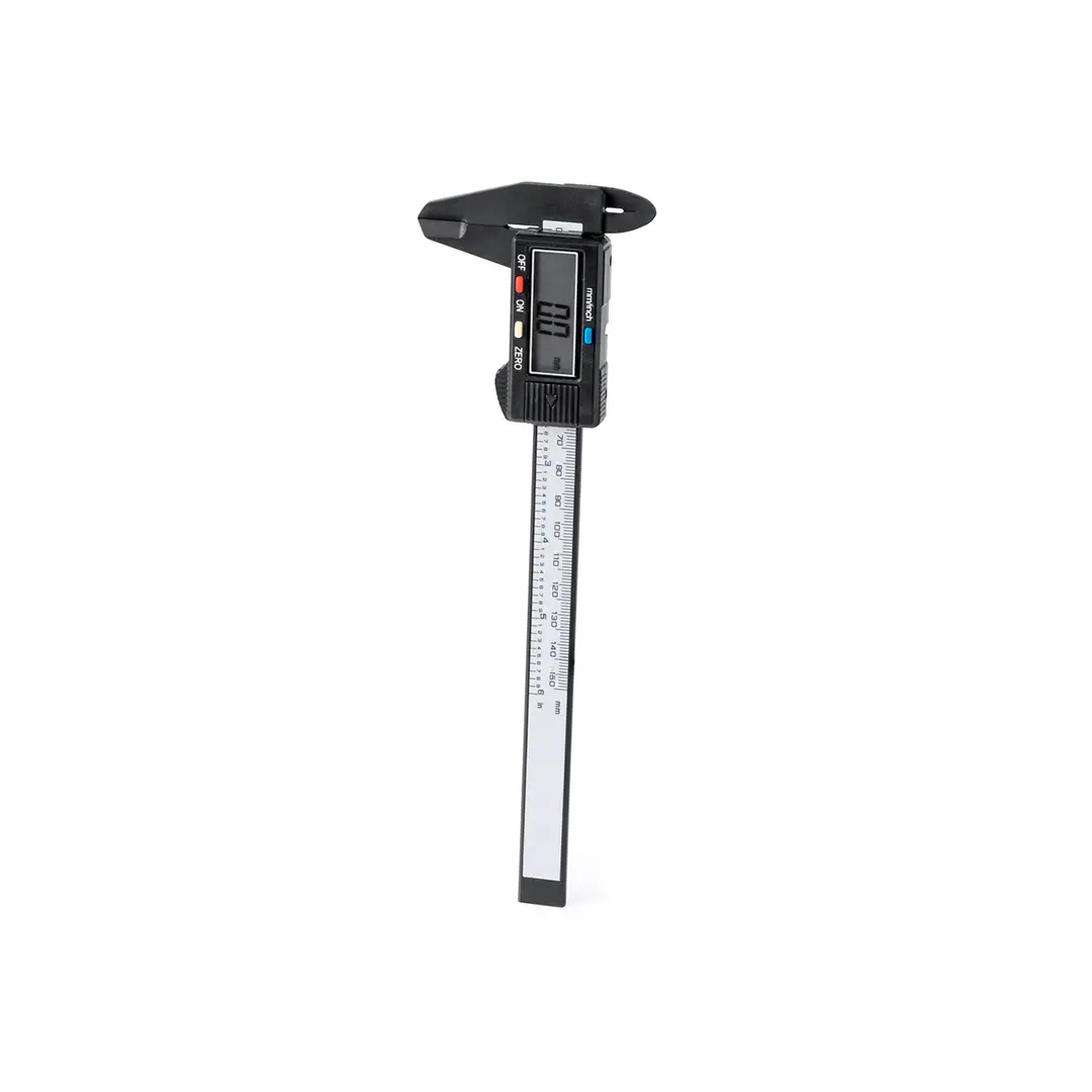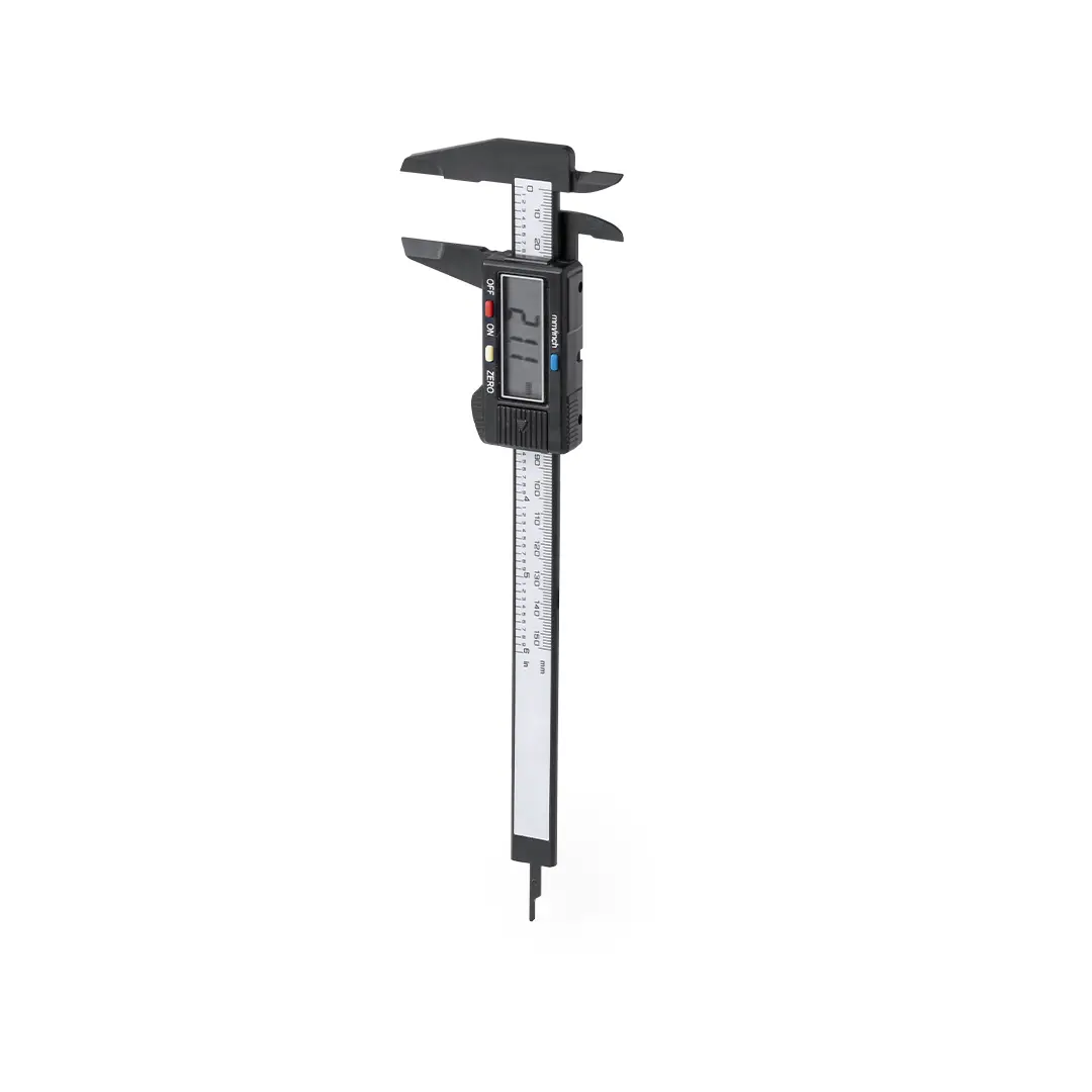 Calibre pie de rey con modo de medición digital y analógico. Con pantalla LCD y botones ON/OFF, ZERO para ajuste y otro para seleccionar la medida en mm o en pulgadas. Incluye sonda para medir la profundidad y pinzas para el medir el interior de los objetos. Rango de medición hasta 150 mm, con instrucciones en español e inglés y presentado en caja individual de diseño kraft.