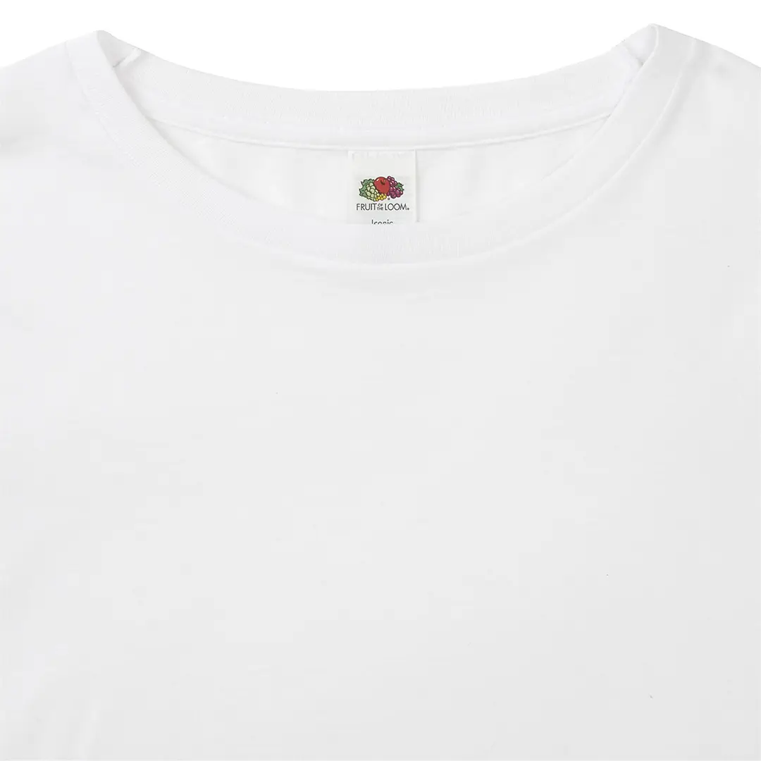 Camiseta adulto blanca Iconic Long Sleeve de Fruit Of The Loom. Manga larga, fabricada en material 100% algodón peinado Ring Spun de 140g/m2. De tacto suave y corte clásico, con cuello redondo estrecho de canalé 1×1 y tapeta a juego. Etiqueta fácilmente removible y disponible en tallas S, M, L, XL, XXL.