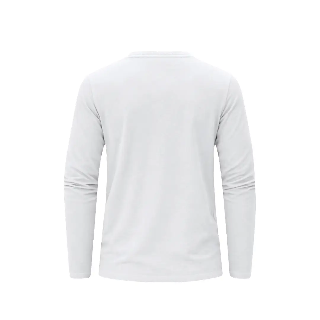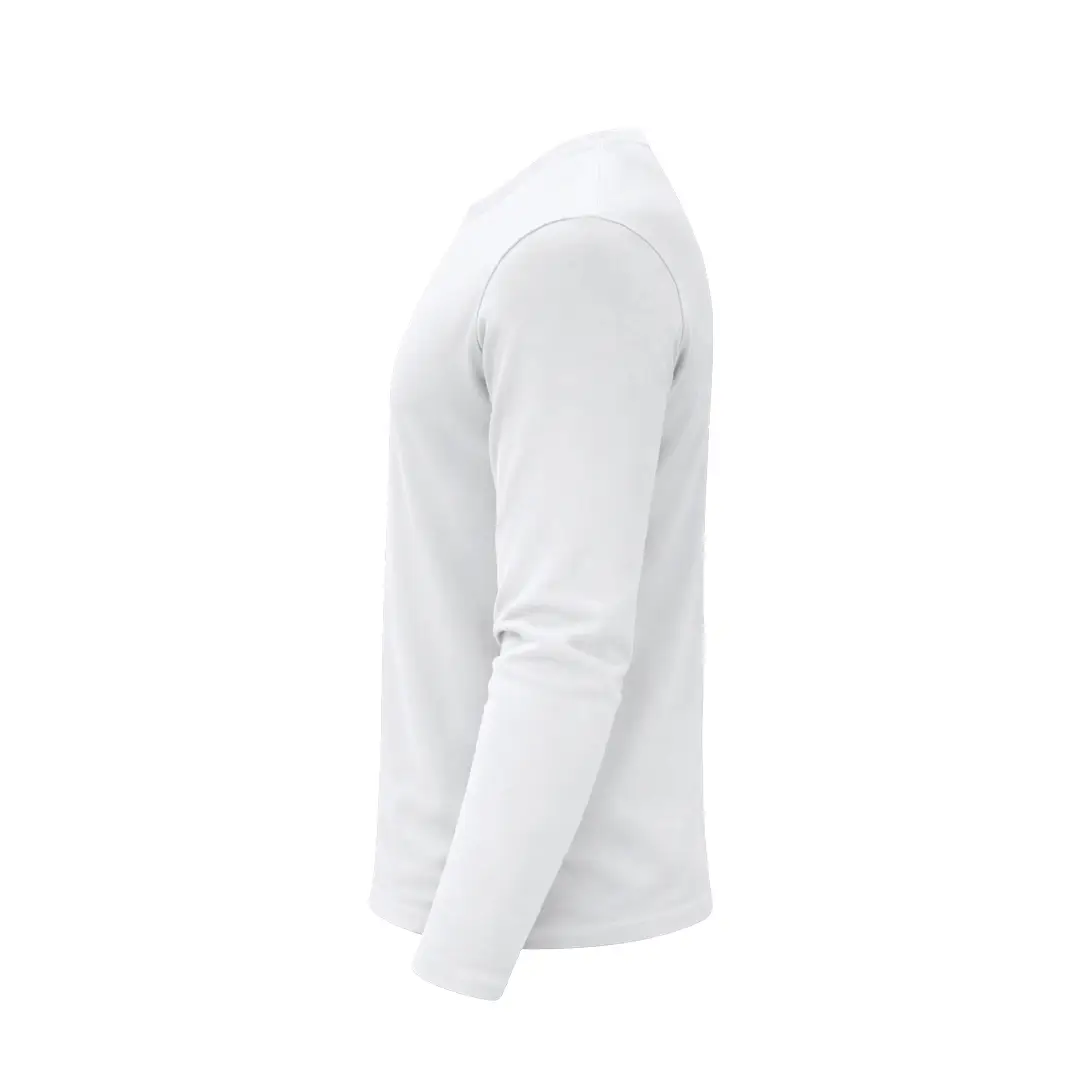 Camiseta de manga larga para adulto en color blanco de suave y agradable tacto en 100% algodón, punto liso de 160 g/m2. Confeccionada en tejido tubular, con cuello redondo acanalado 1×1 y con cubrecosturas reforzado a juego en color blanco.