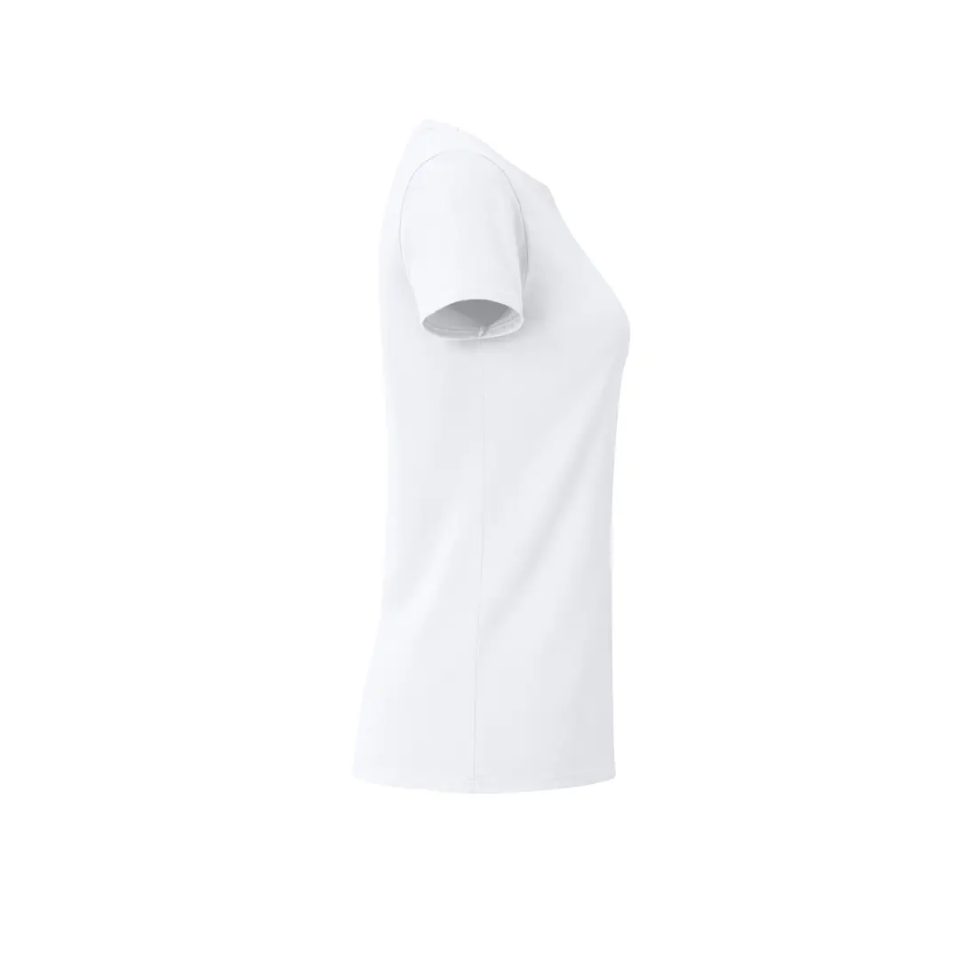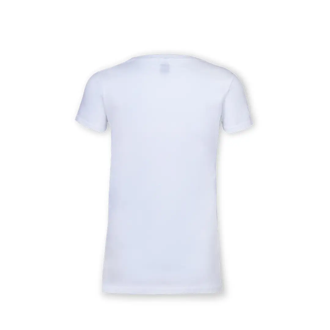 Camiseta para mujer blanca Iconic de Fruit Of The Loom. Fabricada en material 100% algodón peinado Ring Spun de 140g/m2. De tacto suave y corte entallado, con costuras laterales diseñadas para un ajuste perfecto. Con cuello redondo estrecho de canalé 1×1 y tapeta a juego. Etiqueta fácilmente removible y disponible en tallas XS, S, M, L, XL, XXL.