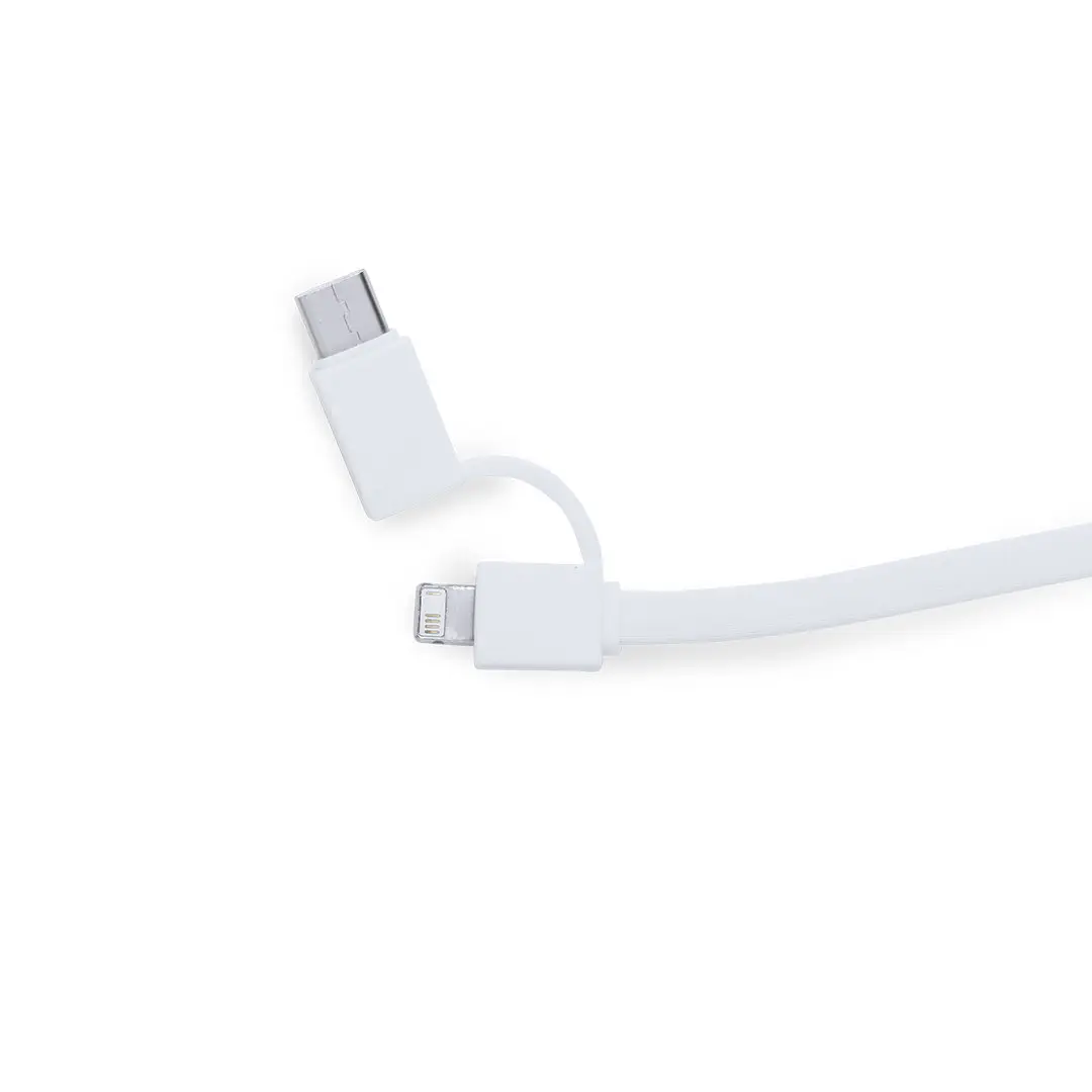 Cargador inalámbrico de diseño ultra compacto en diseño monocolor blanco. Conexión dual micro USB y Lightning, con adaptador Tipo C y luz indicadora de carga. Compatible con dispositivos equipados con tecnología de carga inalámbrica.