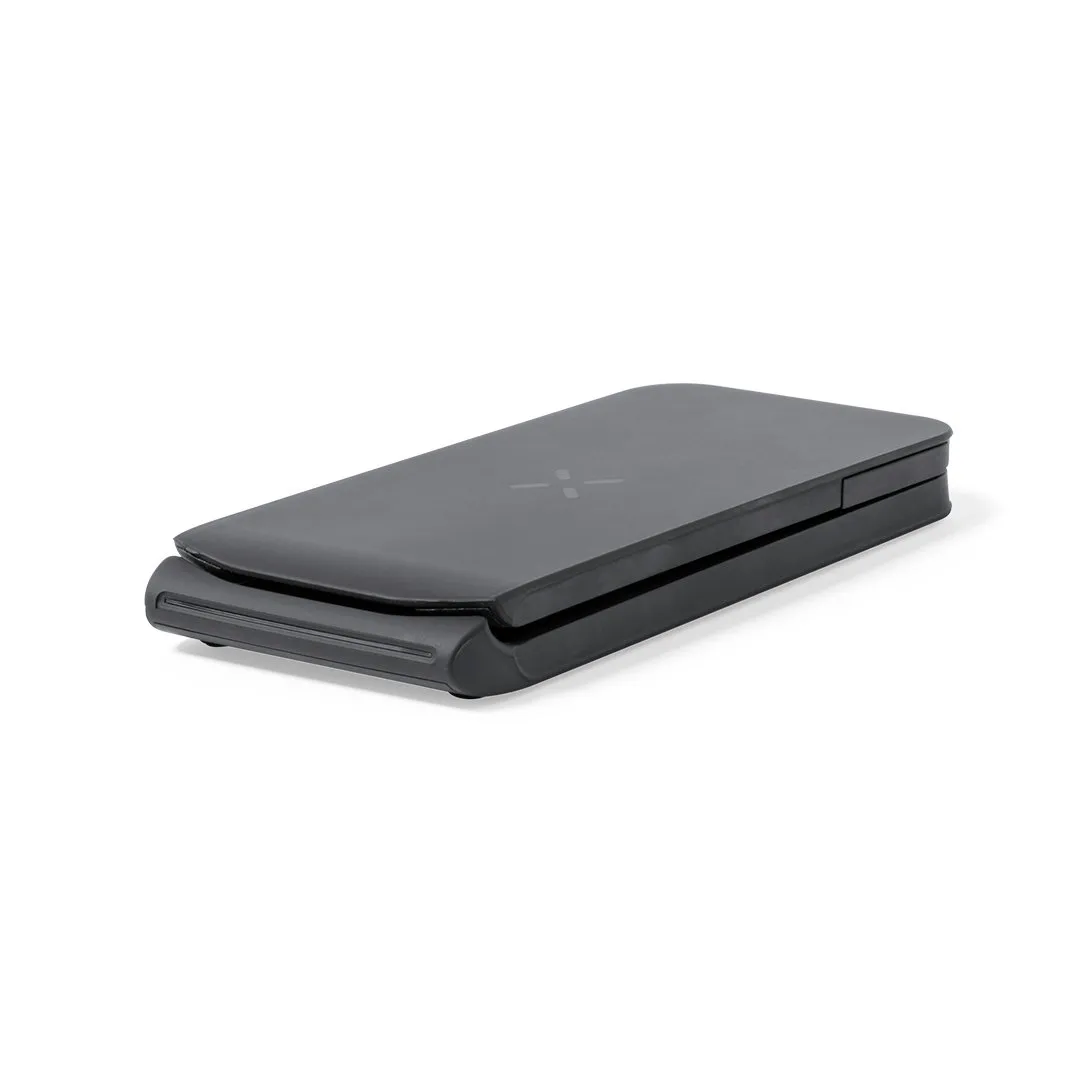 Completo cargador inalámbrico 15W con soporte para gadgets. Diseñado para la carga simultánea del smartphone, auriculares y smartwatch: una estación de carga todo en uno, versátil y plegable. Presentado en atractiva caja individual de diseño.