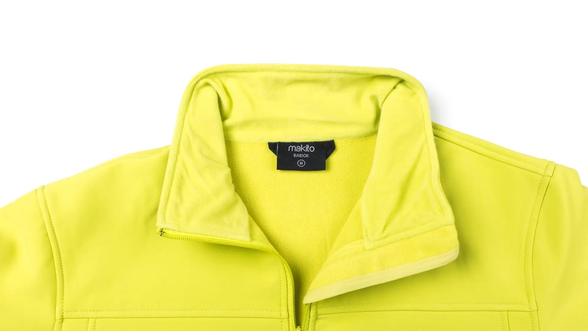 Chaqueta impermeable y transpirable en combinación de materiales soft shell y elastano de 300g/m2. En variada gama de vivos colores, con cierre de cremallera y bolsillos laterales. Disponible en tallas S, M, L, XL, XXL.