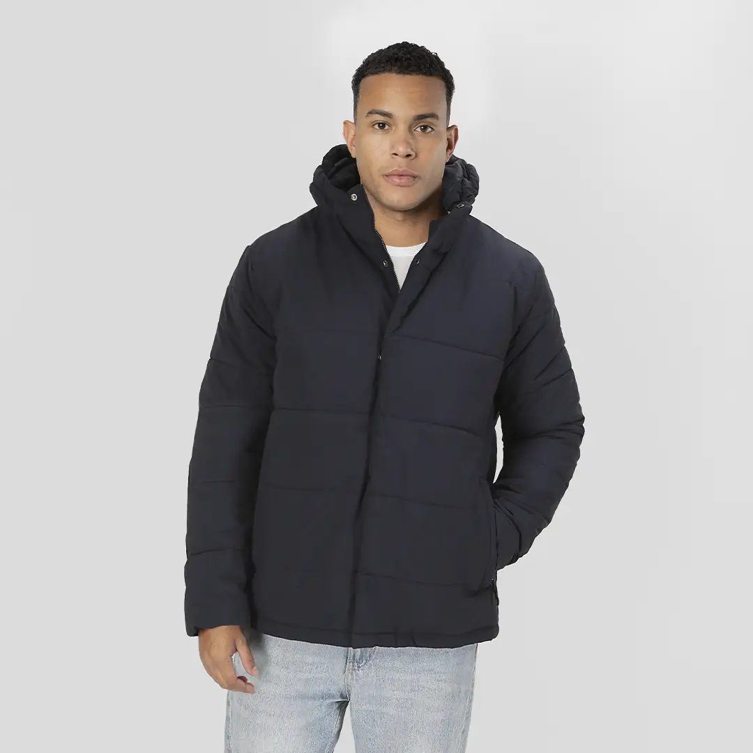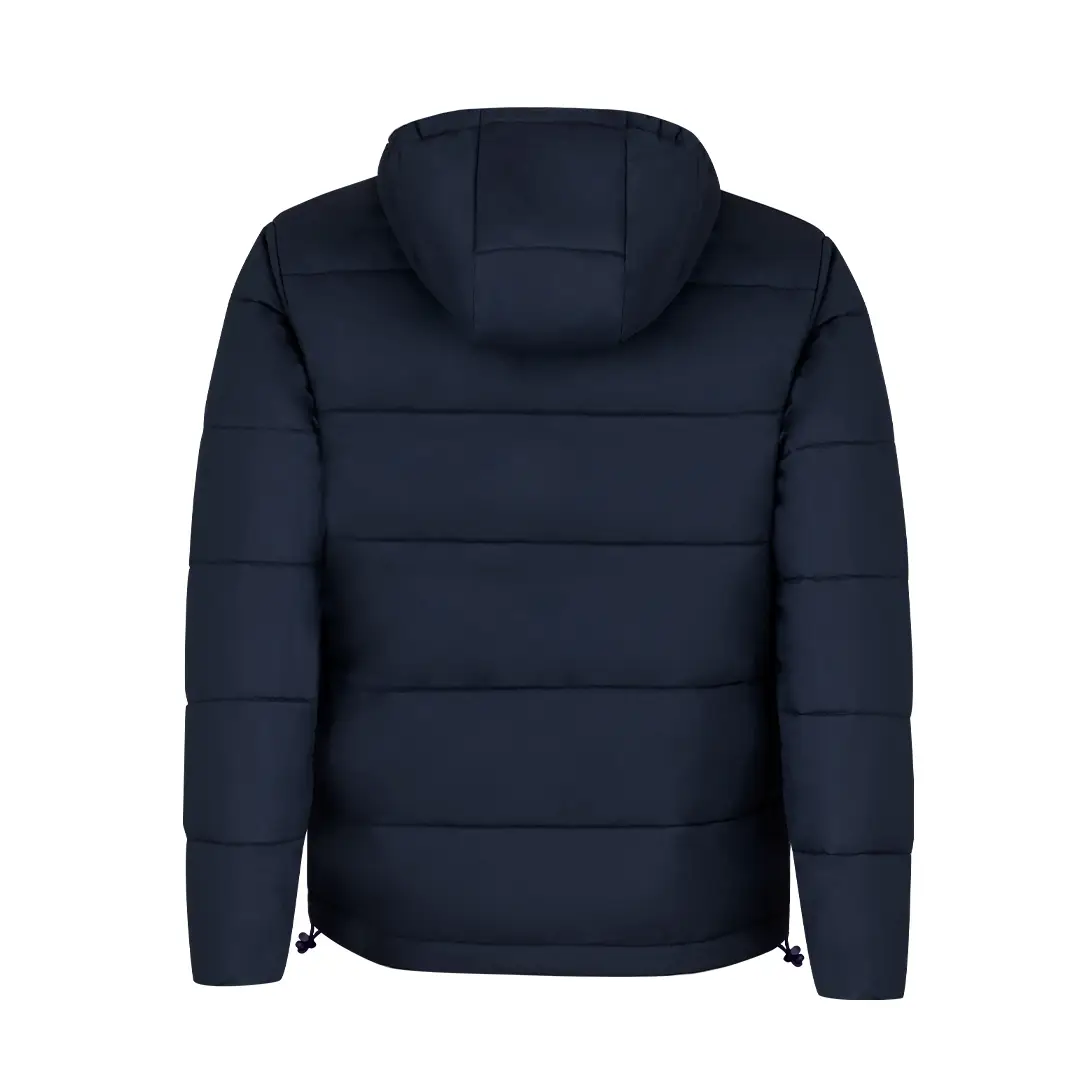 Chaqueta tipo parka, con capucha, en cálido y suave material 100% poliéster. En material ligero, resistente al viento y al agua. Diseño de elegante construcción horizontal y acolchado, con capucha fija integrada. Doble cierre frontal de cremallera y corchetes. Bolsillos laterales con tiradores a juego y cordón ajustable en dobladillo. Disponible en tallas XS, S, M, L, XL, XXL.