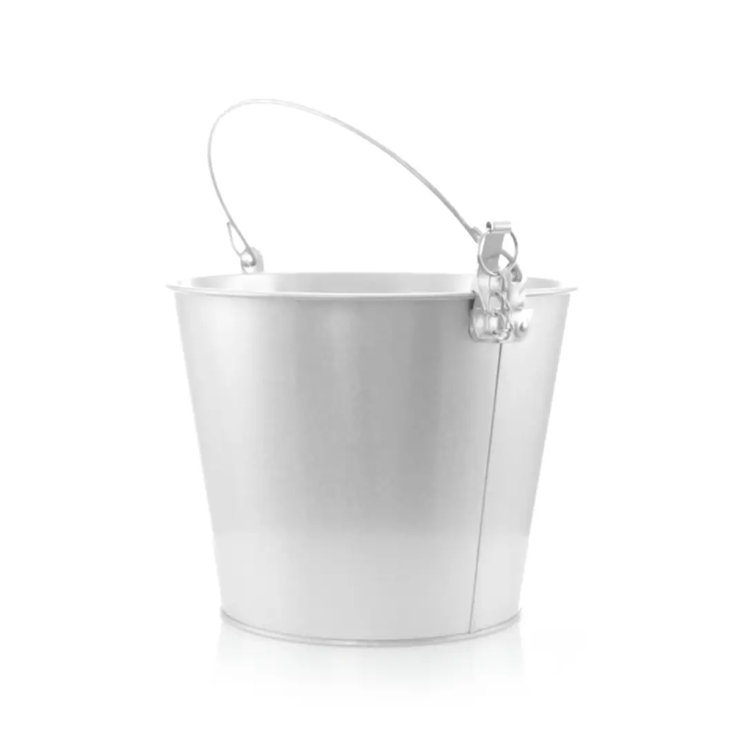Cubo metálico de 6l de capacidad con asa y abridor de aluminio con cadena incluido.