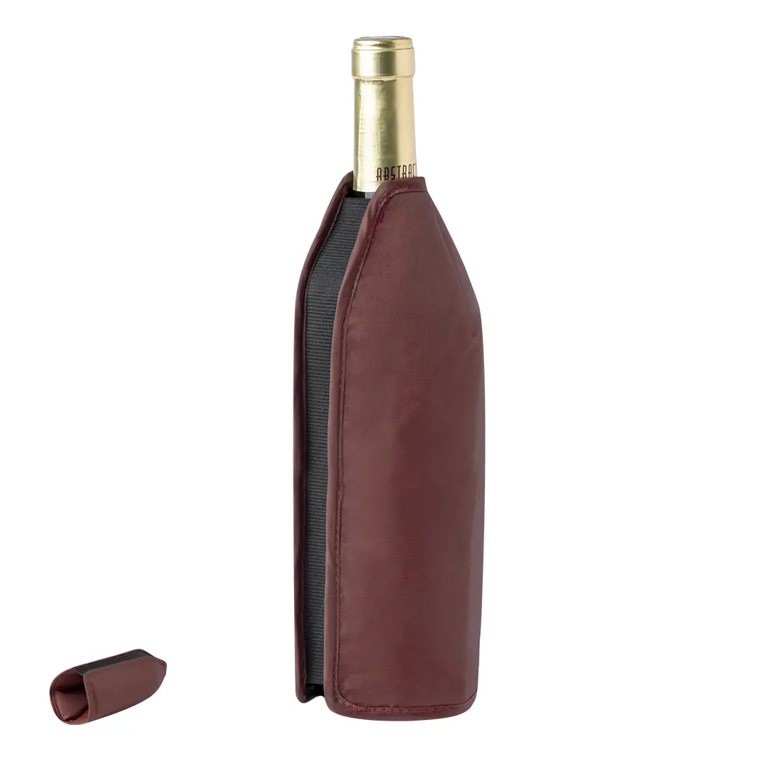 Enfriador de botellas de práctico diseño. Adaptable a cualquier tipo de botella mediante su banda elástica negra que va desde la parte superior a la inferior. Es perfecto para meter en el congelador y mantener la temperatura de la botella durante más tiempo. Disponible en variada gama de colores y presentado en una bolsa de papel reciclada.