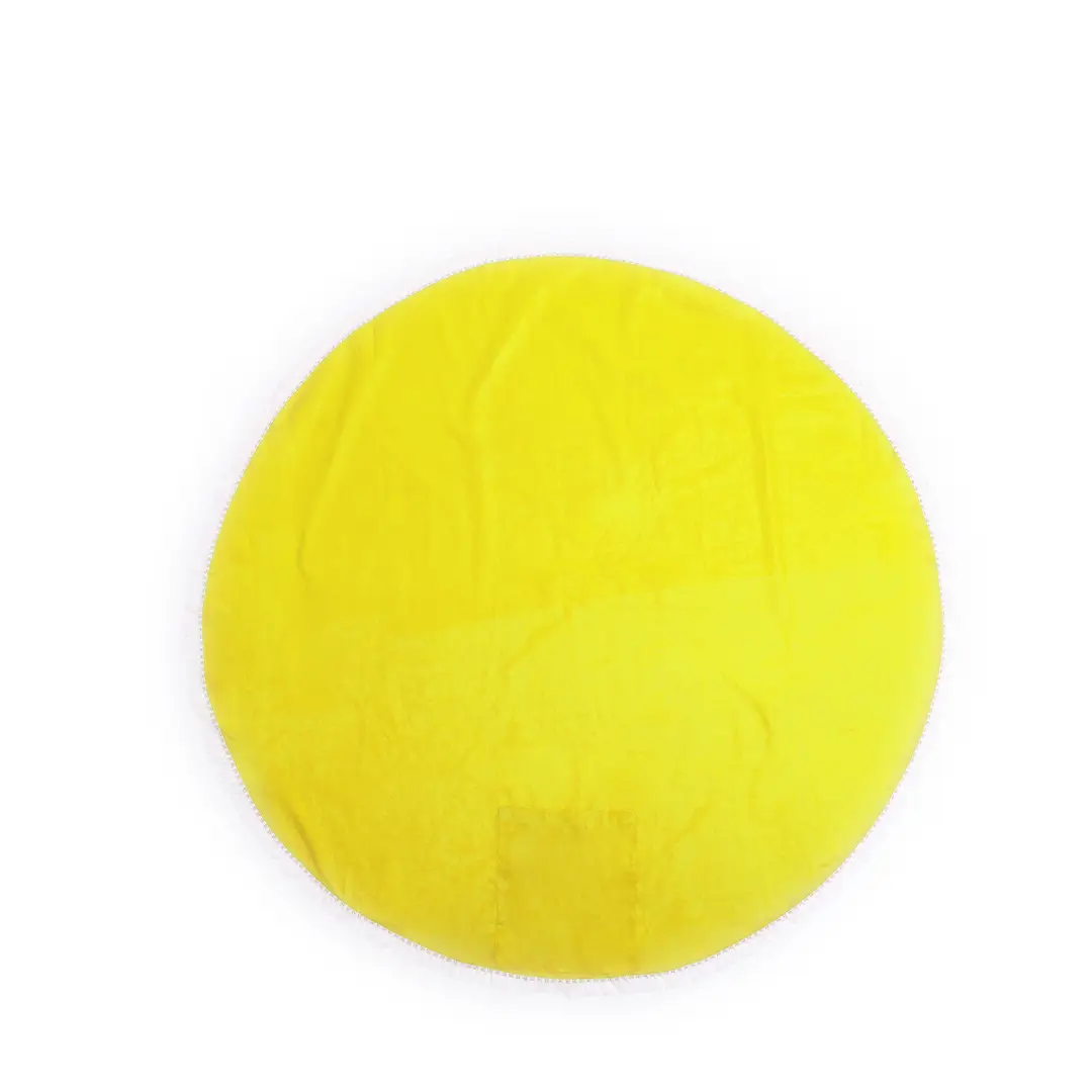Esterilla en material 100% algodón de 125g/m2 en original diseño circular de vivos colores y terminación en flecos.