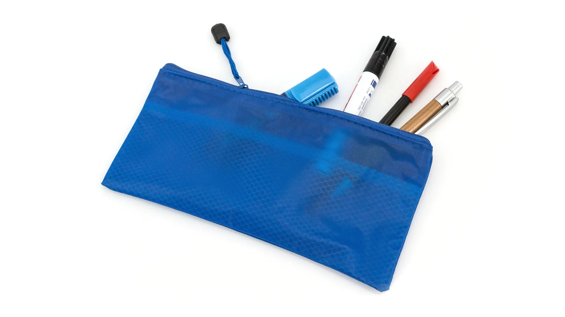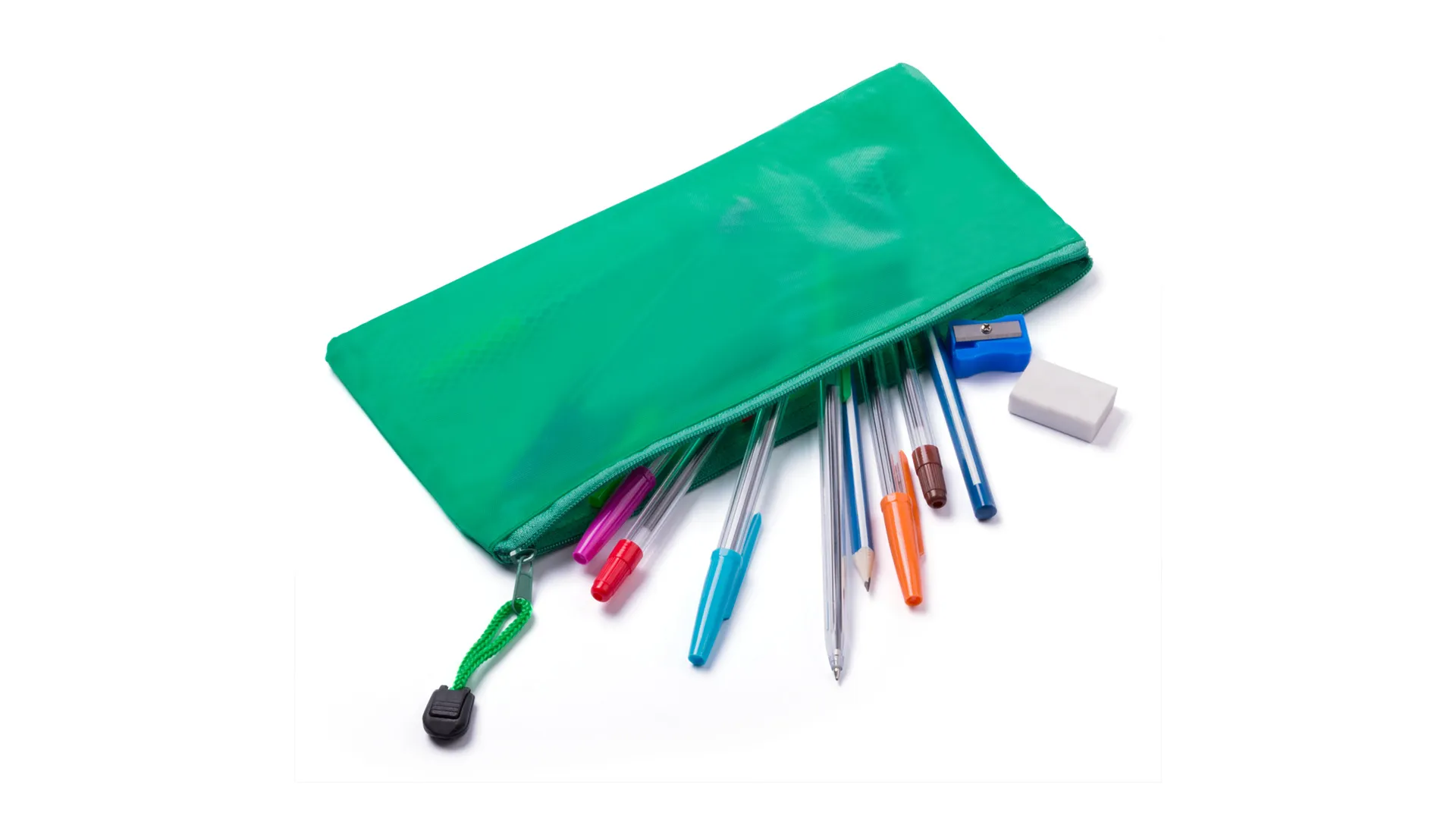 Estuche de cremallera acabado en PVC. 2 Compartimentos interiores con separador interior de rejila y cinta a juego en tirador para fácil apertura.Disponible en amplia gama de colores.