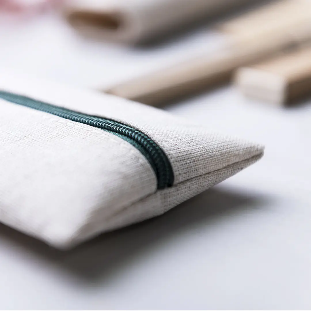 Práctico estuche de línea nature. De tamaño compacto en combinación de materiales yute y algodón. Con cierre de cremallera y hojita para publicidad en tirador.