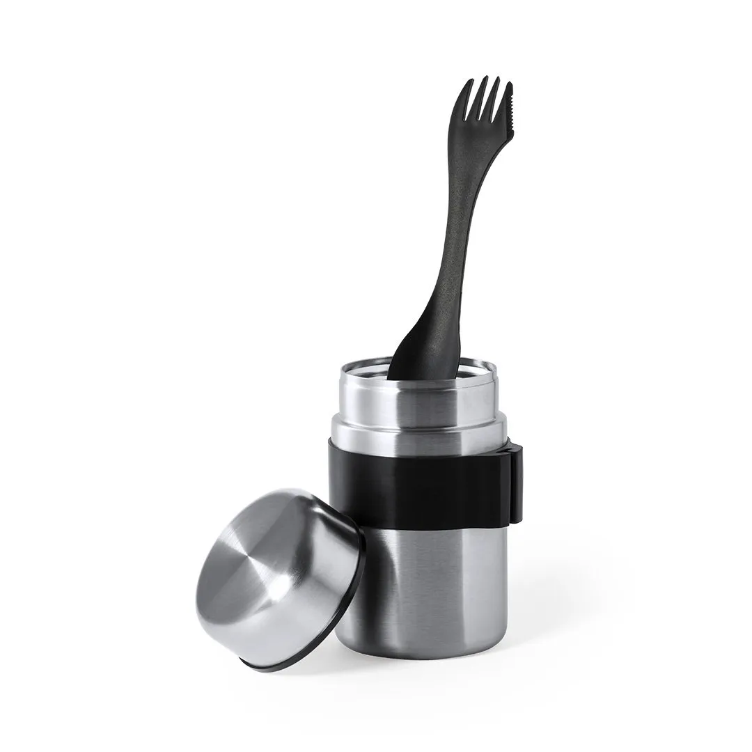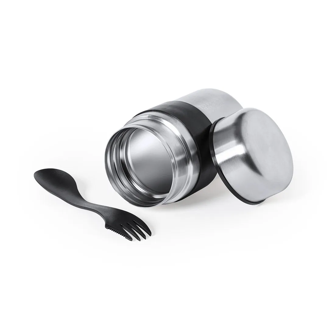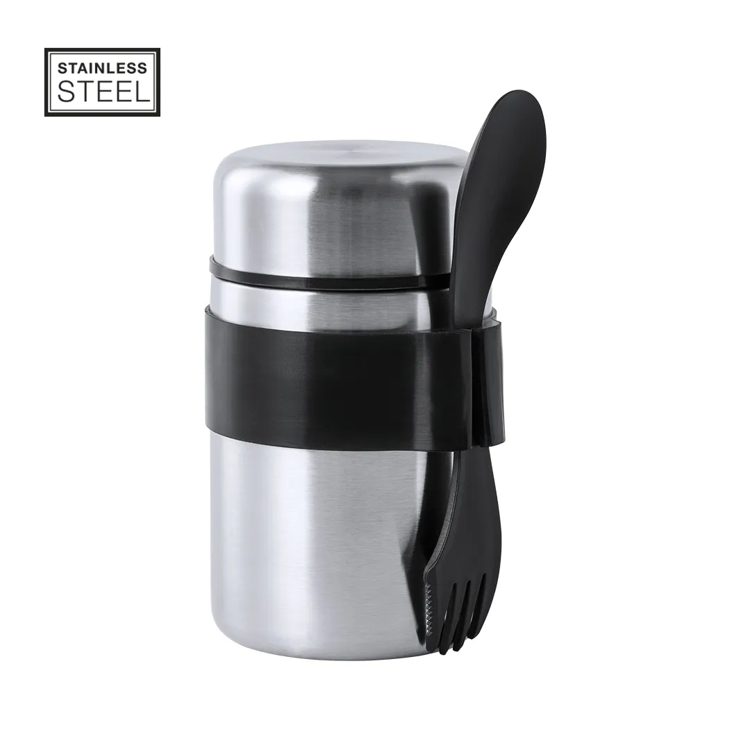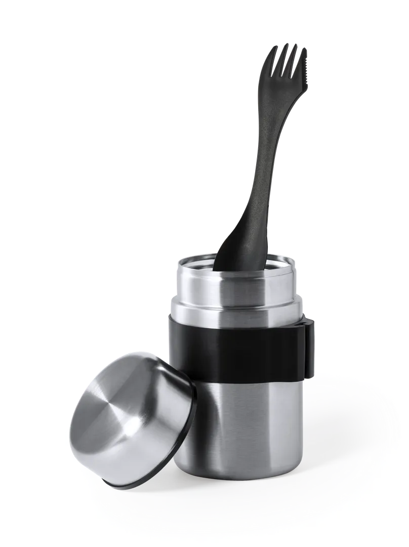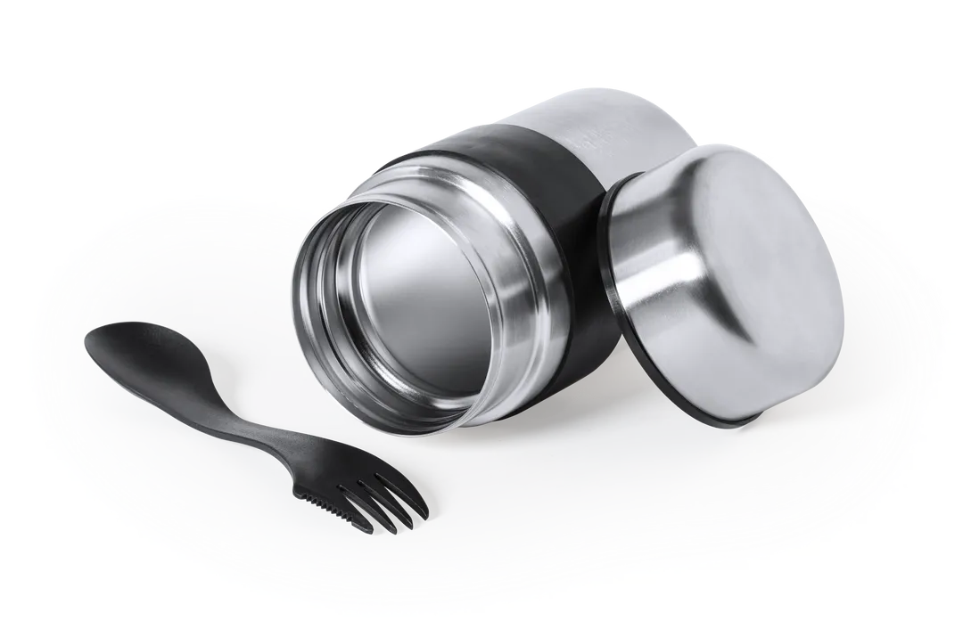 Fiambrera fabricada en acero inox y de 500 ml de capacidad. Cerre de seguridad con tapadera estanca en acero inox. Presentada en atractiva caja individual de diseño.