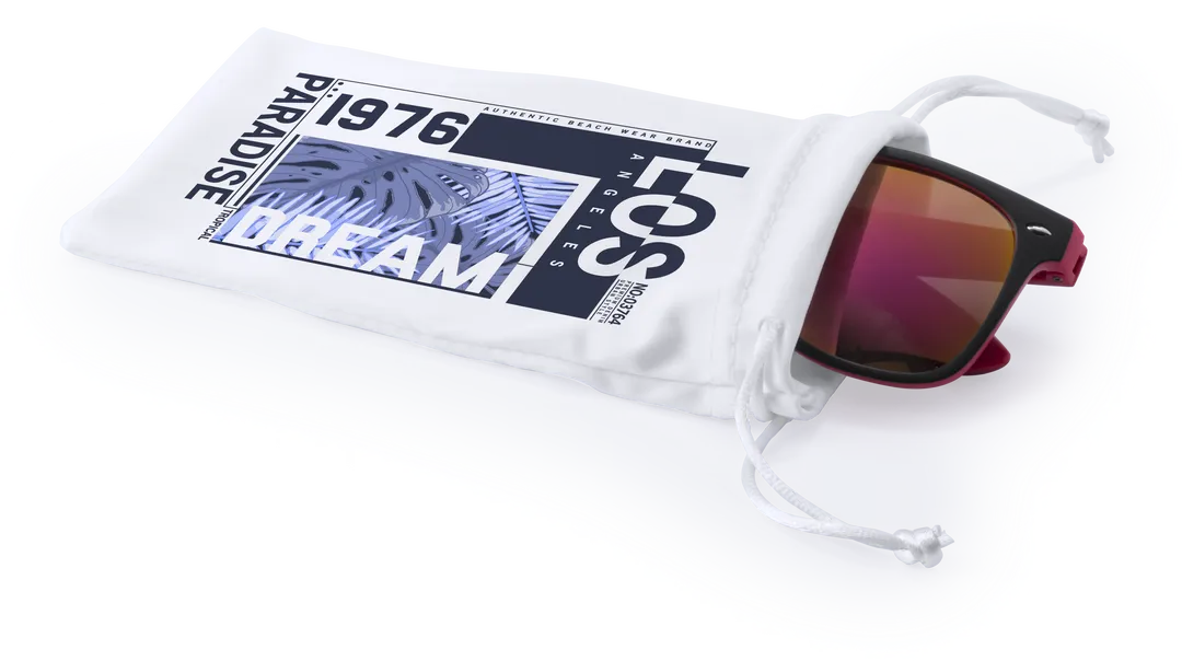 Funda de suave poliéster con cuerpo acabado en color blanco y cierre de cuerdas a juego. Especialmente diseñada para marcaje en sublimación.