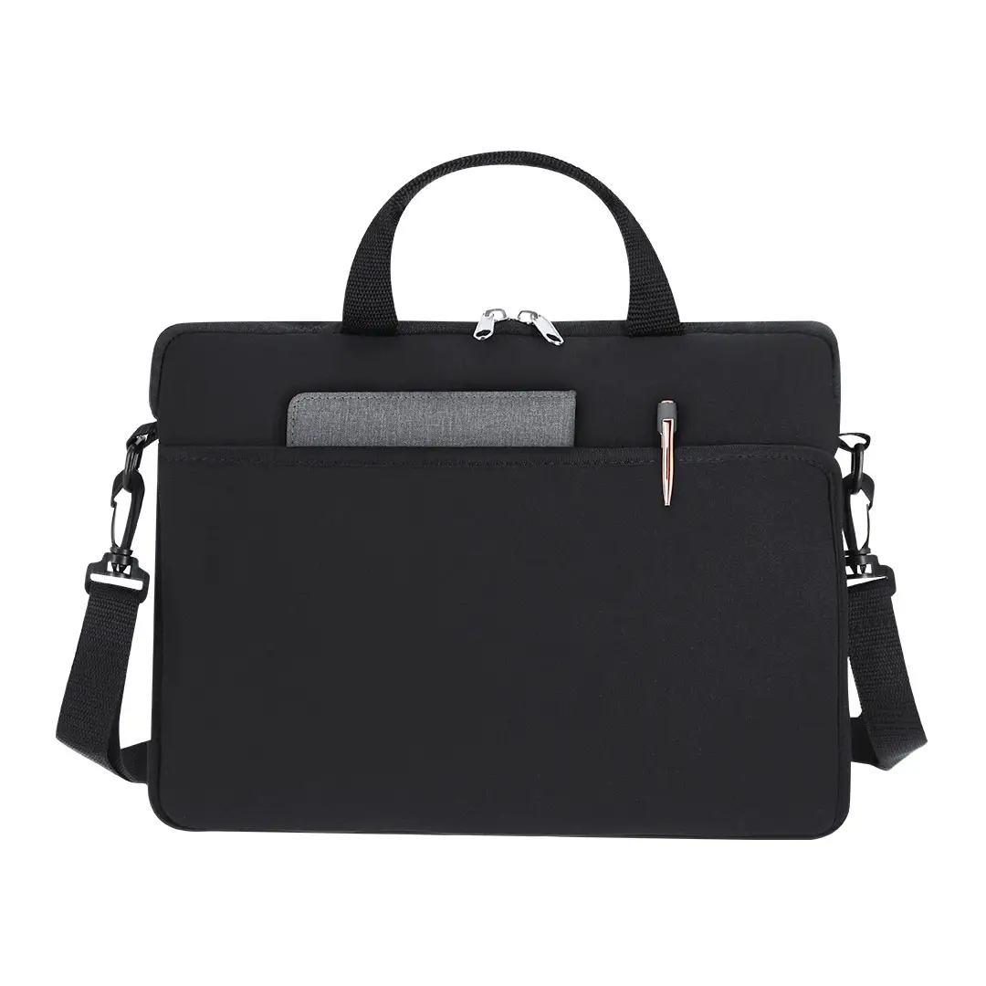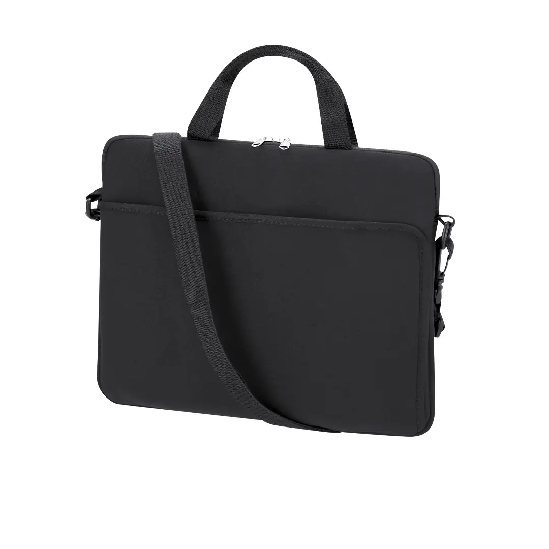 Funda para ordenador portátil confeccionada en soft shell, con compartimento principal acolchado para dispositivos de hasta 14 pulgadas. Diseñada con cierre de cremallera de doble tirador y un práctico bolsillo exterior de acceso rápido. Fácil de transportar gracias a sus asas de mano, cinta para hombro ajustable y cinta trasera para trolley.