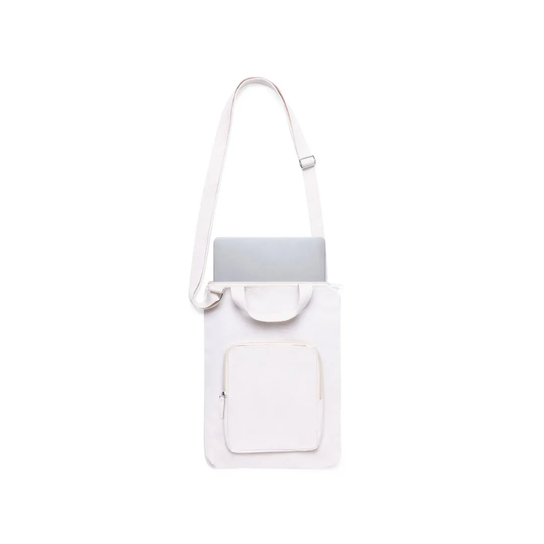Original funda para ordenador portátil, fabricada en resistente canvas de acabado natural. Compartimento principal con cierre de cremallera a juego y asa de transporte. Con cinta bandolera ajustable a juego y bolsillo exterior con cierre de cremallera. Para ordenador portátil o tablet de hasta 15 pulgadas. El canvas es un tejido muy versátil y duradero, compuesto en su mayor medida de algodón. Contribuye al cuidado del medio ambiente, ya que gracias a su resistencia ofrece una gran capacidad de reutilización.