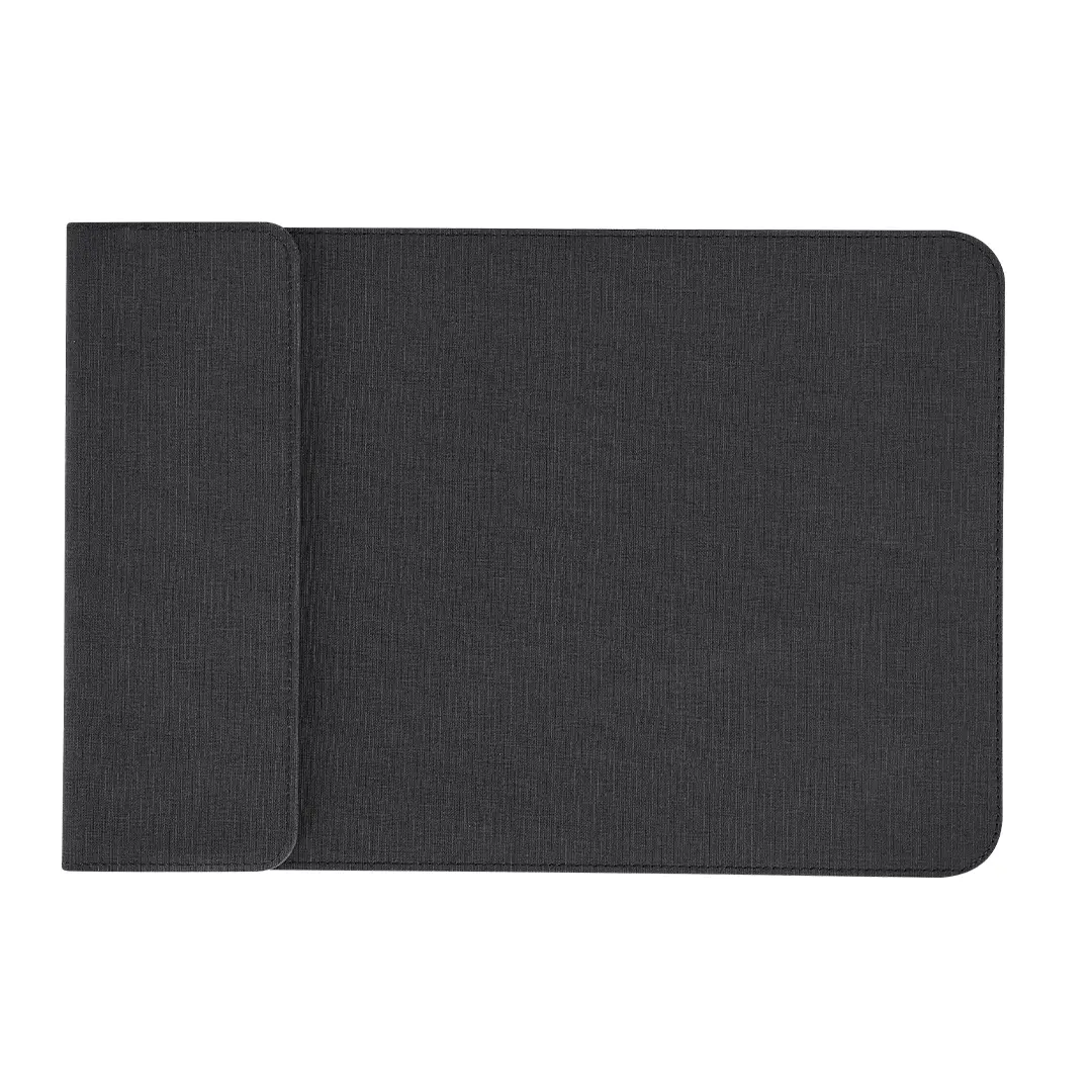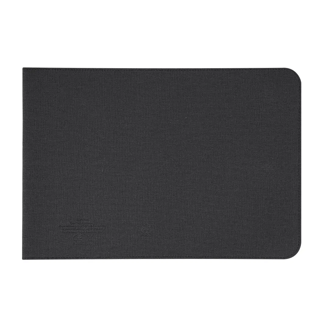 Funda de Ordenador Portátil Multifunción fabricada en PU Reciclado y tejido RPET. Para ordenadores de hasta 13 pulgadas y equipada con sistema de carga inalámbrica multifuncional. Incorpora 2 cargadores: cargador inalámbrico magnético para reloj inteligente, ubicado en la parte superior y, cargador inalámbrico magnético para móvil y/o auriculares en la parte inferior. Con sistema de cierre magnético.