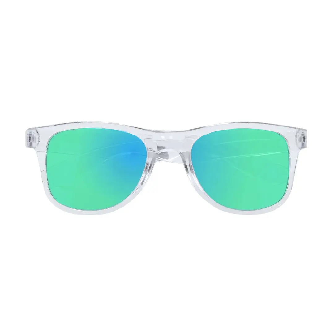 Gafas de sol con protección UV 400. Con montura de diseño translúcido y lentes efecto espejo.