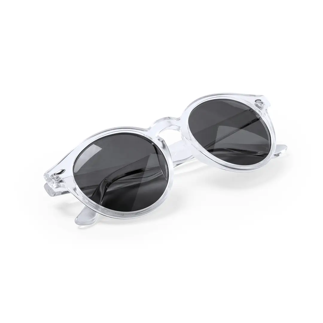 Gafas de sol unisex con protección UV400 de clásico diseño circular. Con montura de diseño en variados colores y lentes en color negro.