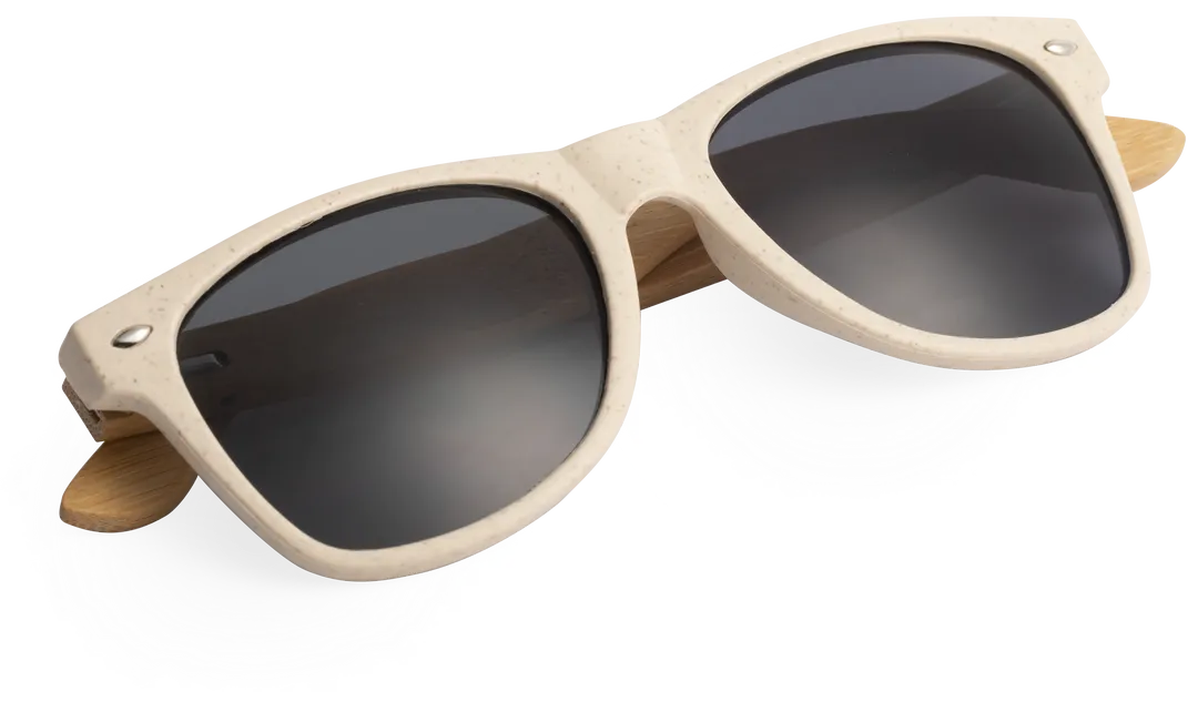 Gafas de sol de línea nature con protección UV400. Con montura en fibra de bambú y patillas en bambú. Lentes tintadas a juego.