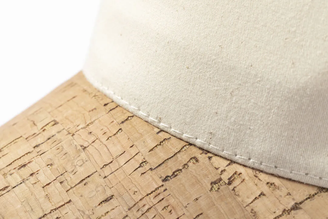 Gorra de línea nature de 5 paneles fabricada algodón orgánico, con visera en corcho natural. Con certificación GOTS (Global Organic Textile Standard, ó Norma Mundial de Textiles Orgánicos) que garantiza que los tejidos están hechos de fibras orgánicas. Con cierre ajustable de velcro.