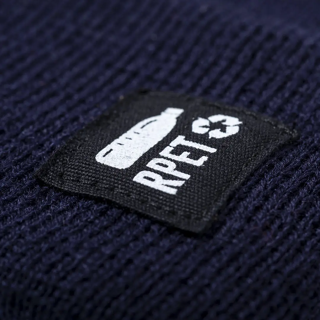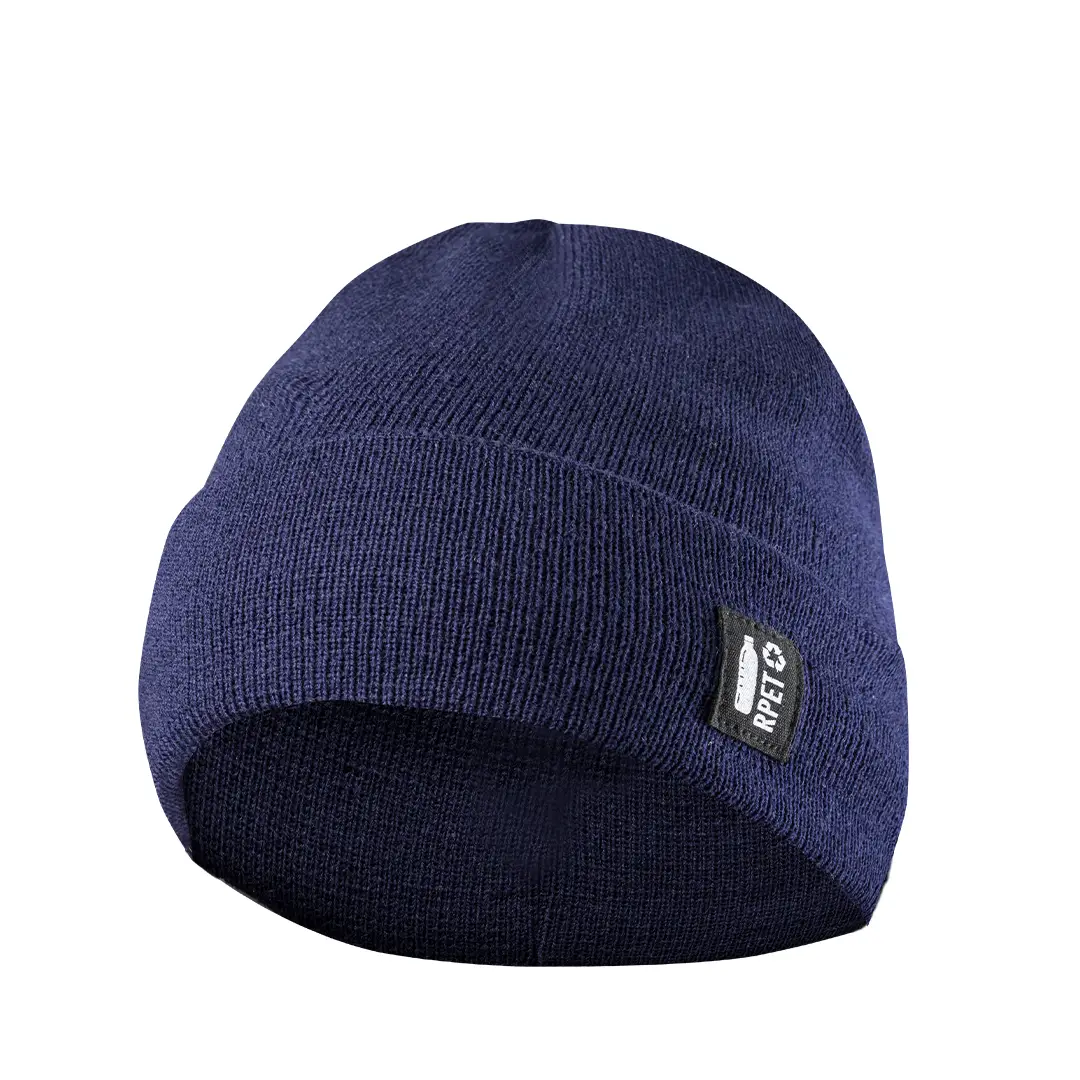 Suave y cálido gorro de punto de línea nature y en poliéster RPET, elaborado a partir de plástico reciclado para así fomentar la reutilización de residuos plásticos y contribuir a la sostenibilidad del planeta. Con dobladillo en frontal y disponible en variada gama de colores. Distintivo RPET en etiqueta exterior.