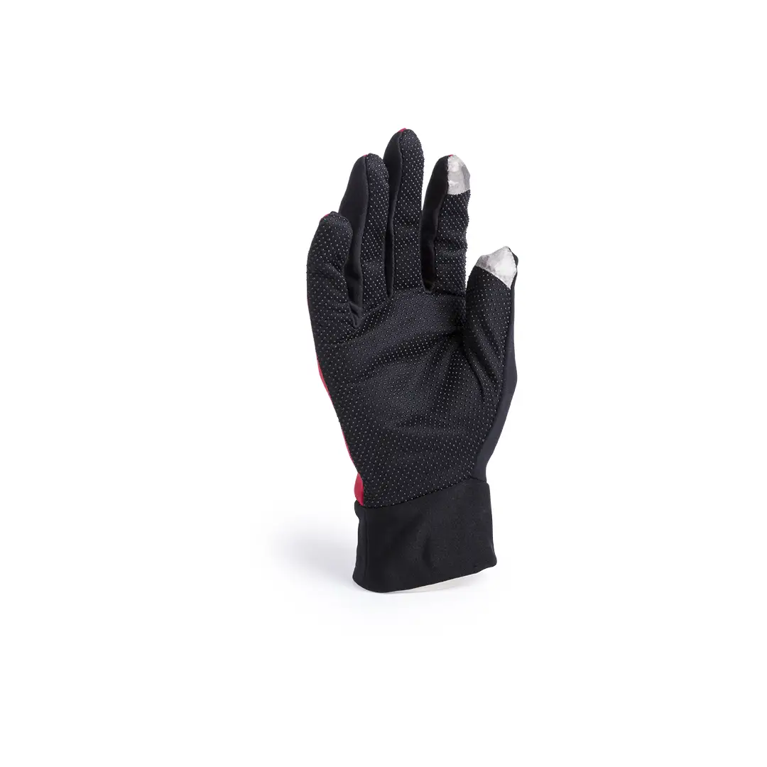 Par de guantes deportivos fabricados en resistente poliéster y licra. En diseño bicolor, con base en negro y detalles a color. Agarre en palma y función táctil en dedos índice y pulgar. Talla única para adultos.