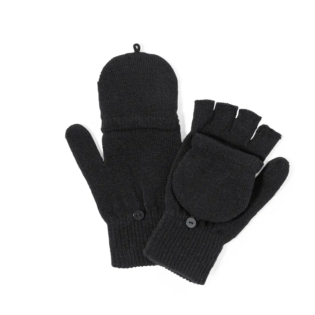 Práctico par de guantes fabricados en cálido y suave acrílico. Con solapa plegable para convertirlos en manoplas, ideales para protegerse del frío manteniendo una buena manejabilidad. Talla única adulto. Presentados en bolsa individual reciclada.