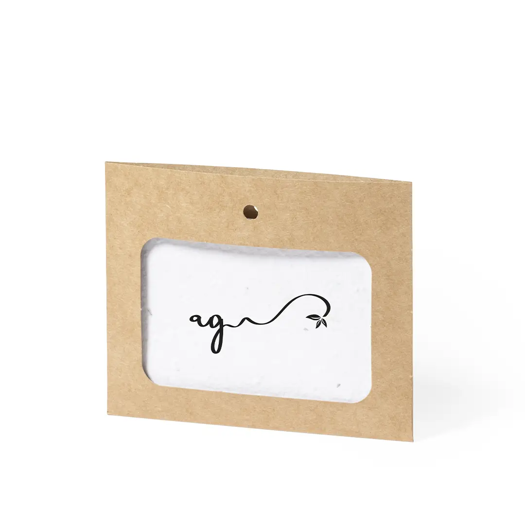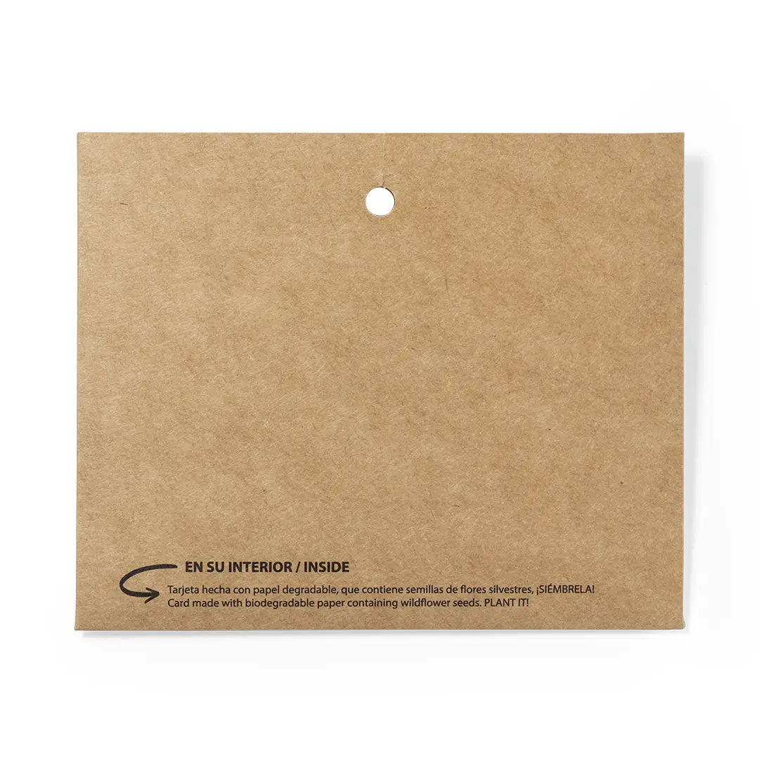 Identificador en cartón reciclado. Incluye tarjeta con semillas de flores silvestres, convirtiéndolo así en papel plantable al final de su vida útil. Flores silvestres en colores surtidos, con instrucciones de plantado en el interior y distintivo Made in Europe.