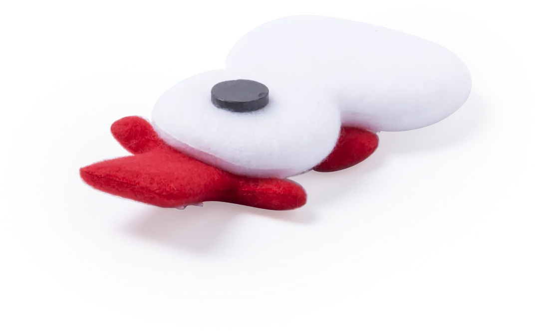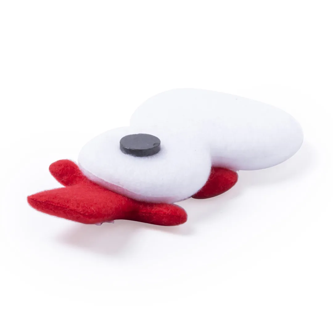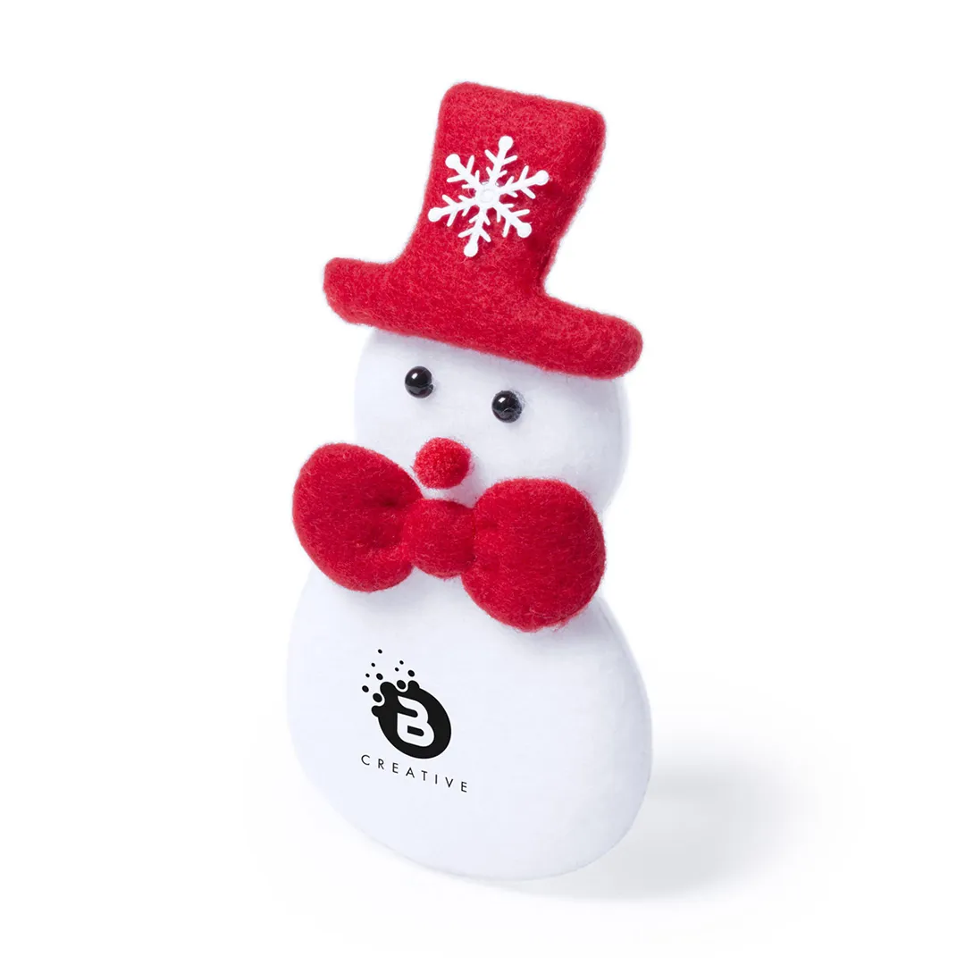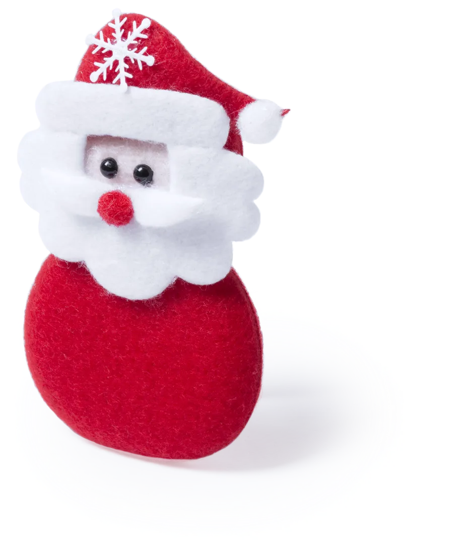 Original imán navideño con figuras de Papá Noel y muñeco de nieve en suave poliéster.