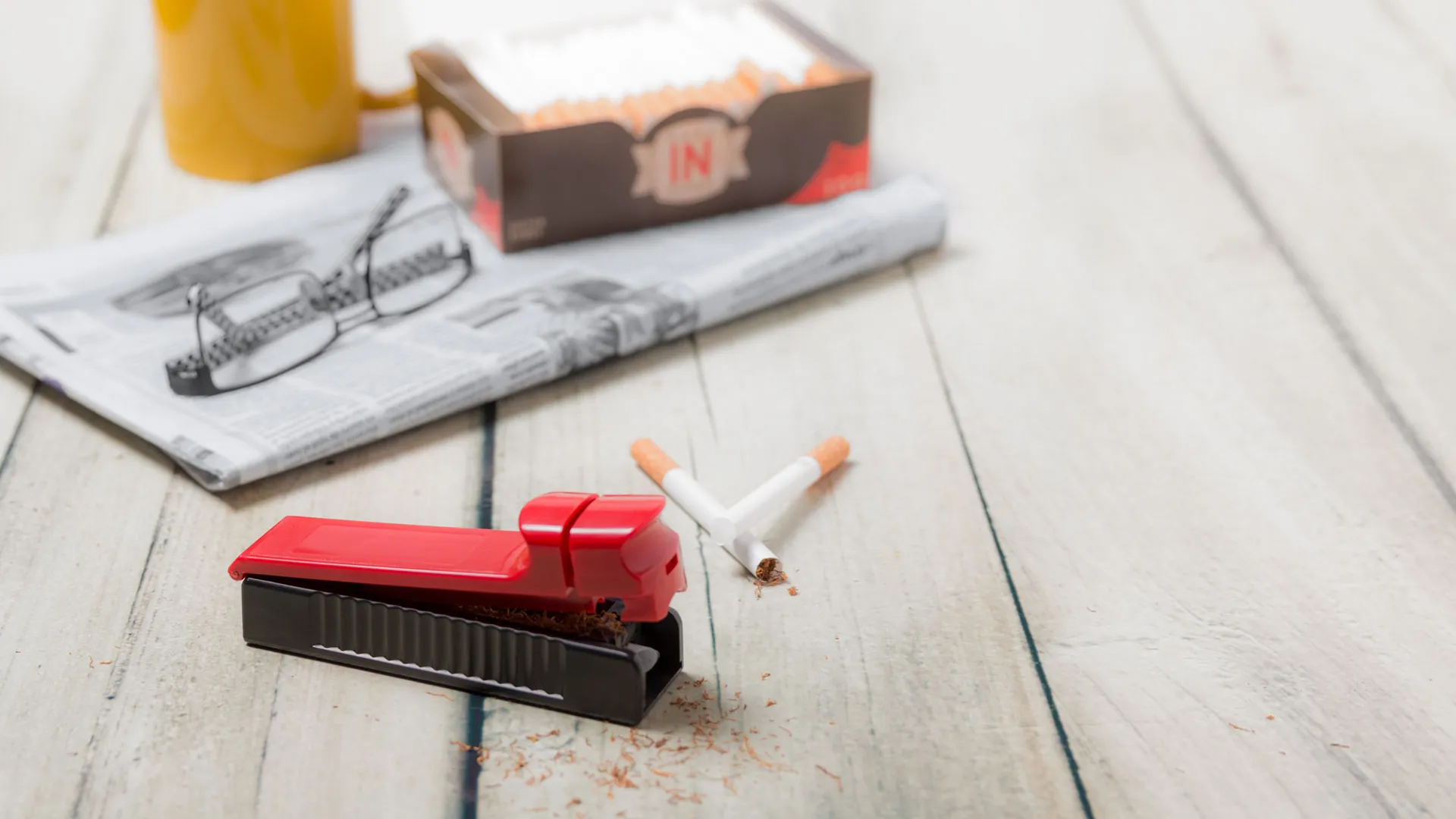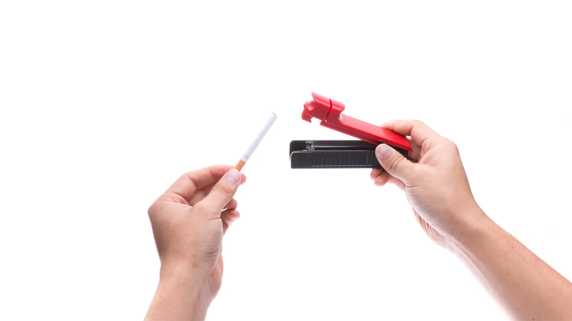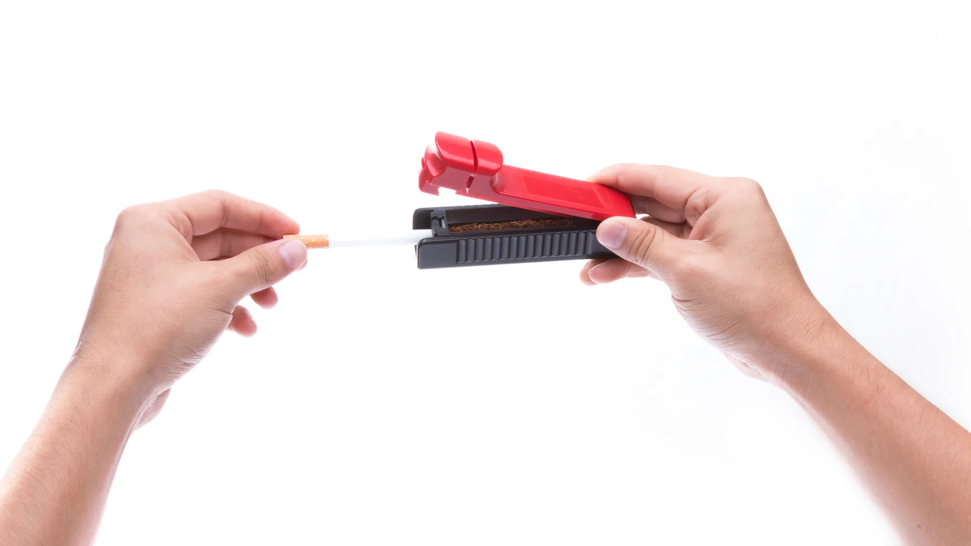 Inyectora para tabaco en diseño bicolor y variada gama de colores. Con pulsador de entubado y presentada en caja individual de diseño.