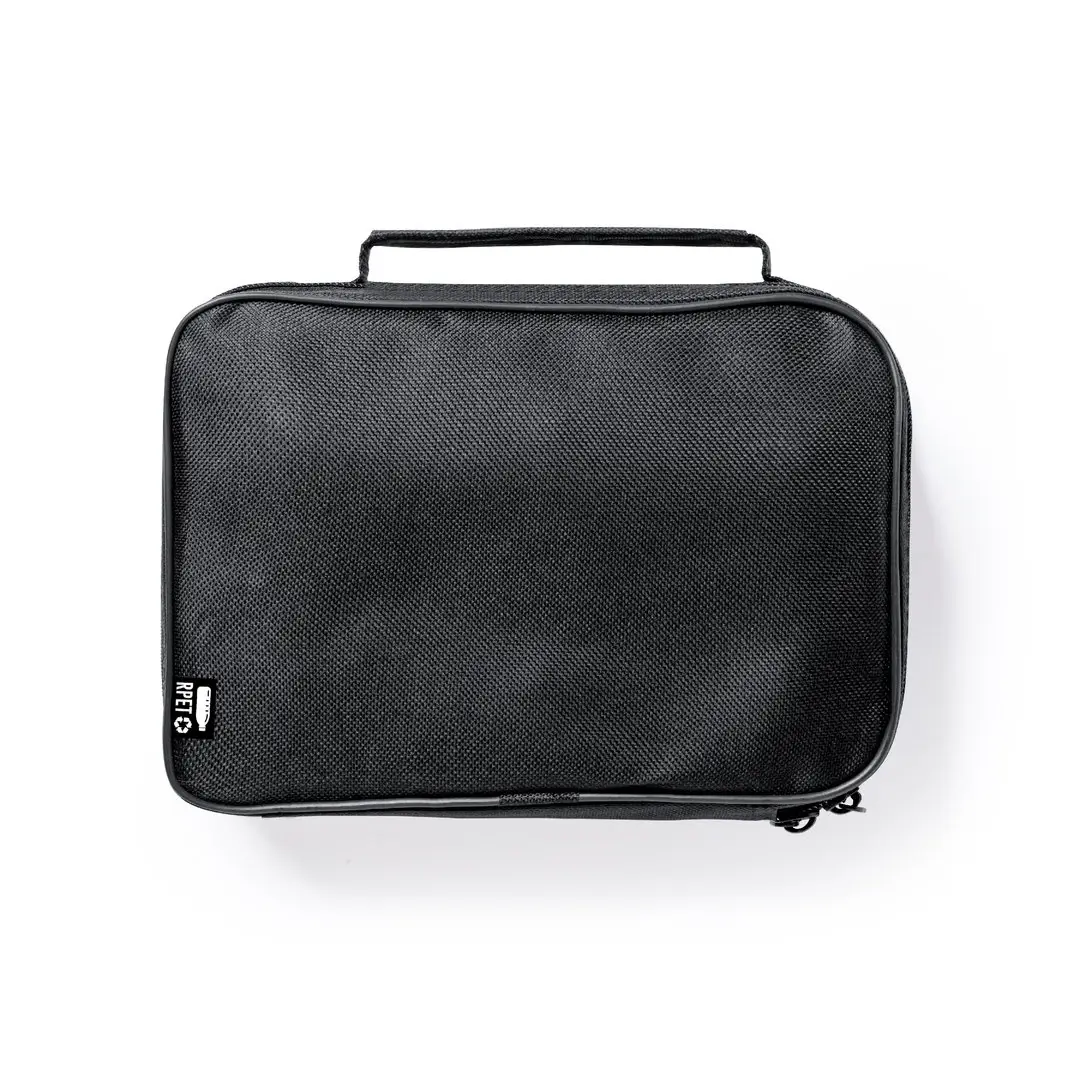 Juego de petanca de alta calidad. Incluye 6 bolas metálicas, boliche en madera y cuerda de medición. Set en resistente funda de RPET negra con asa de transporte y cierre de cremallera a juego. Distintitivo RPET en etiqueta exterior.El material RPET se elabora a partir de plástico reciclado, para así fomentar la reutilización de residuos plásticos y ayudar a la sostenibilidad del planeta.