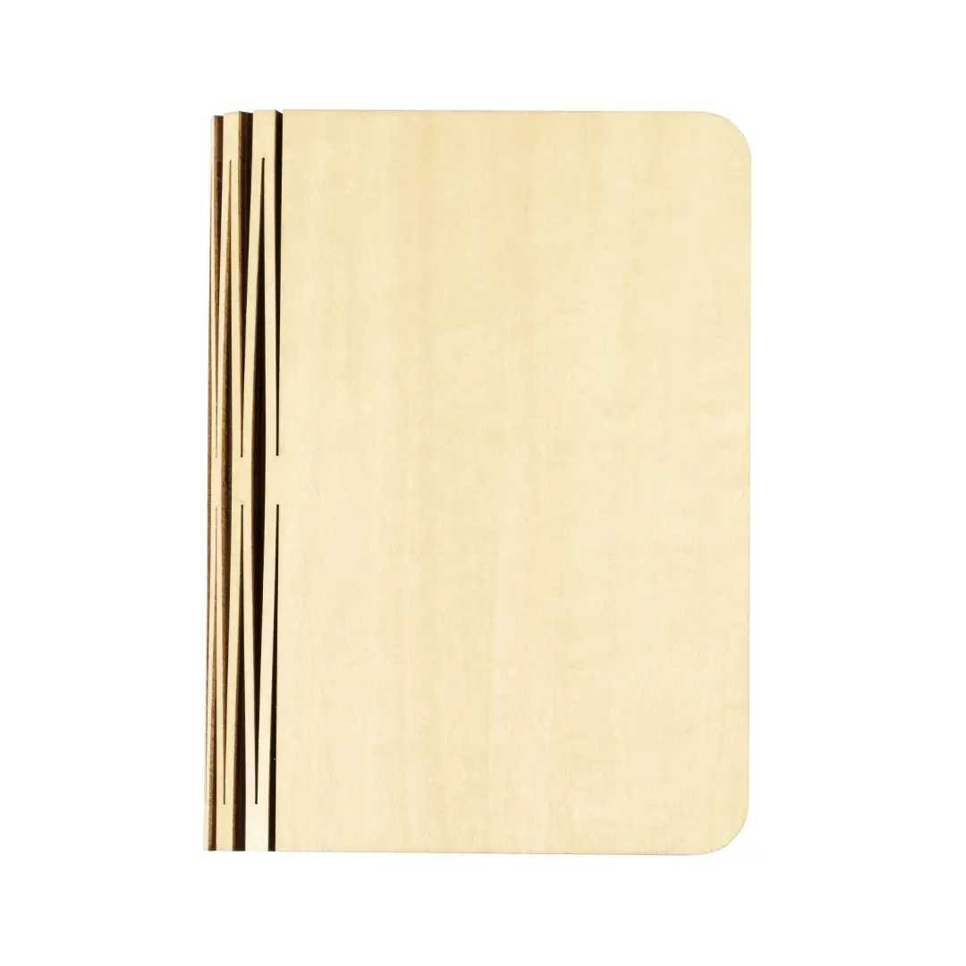 Original lámpara portátil LED con forma de libro. Fabricada en madera, cuenta con un interior que simula hojas de papel, iluminadas por 16 LEDs. Recargable mediante batería de 700mAh, con cable cargador USB incluido. Presentado en caja de diseño kraft.