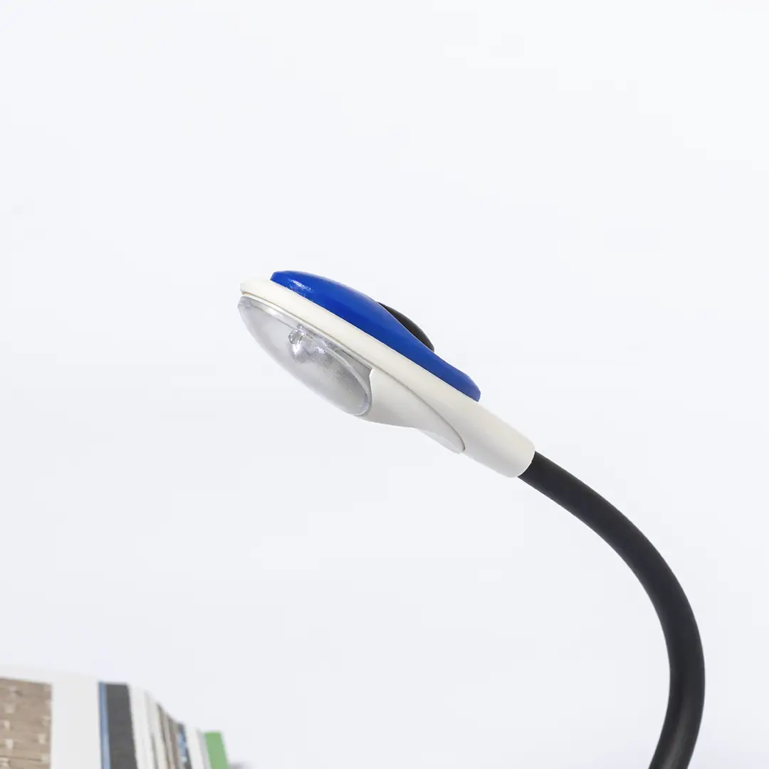 Lámpara led de lectura de diseño bicolor. Con cuerpo flexible y cómoda pinza de sujeción. Presentada en caja individual.