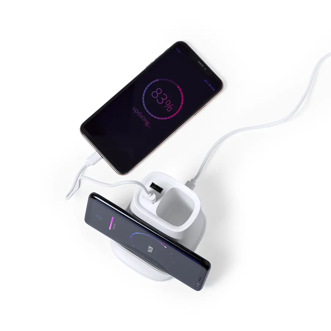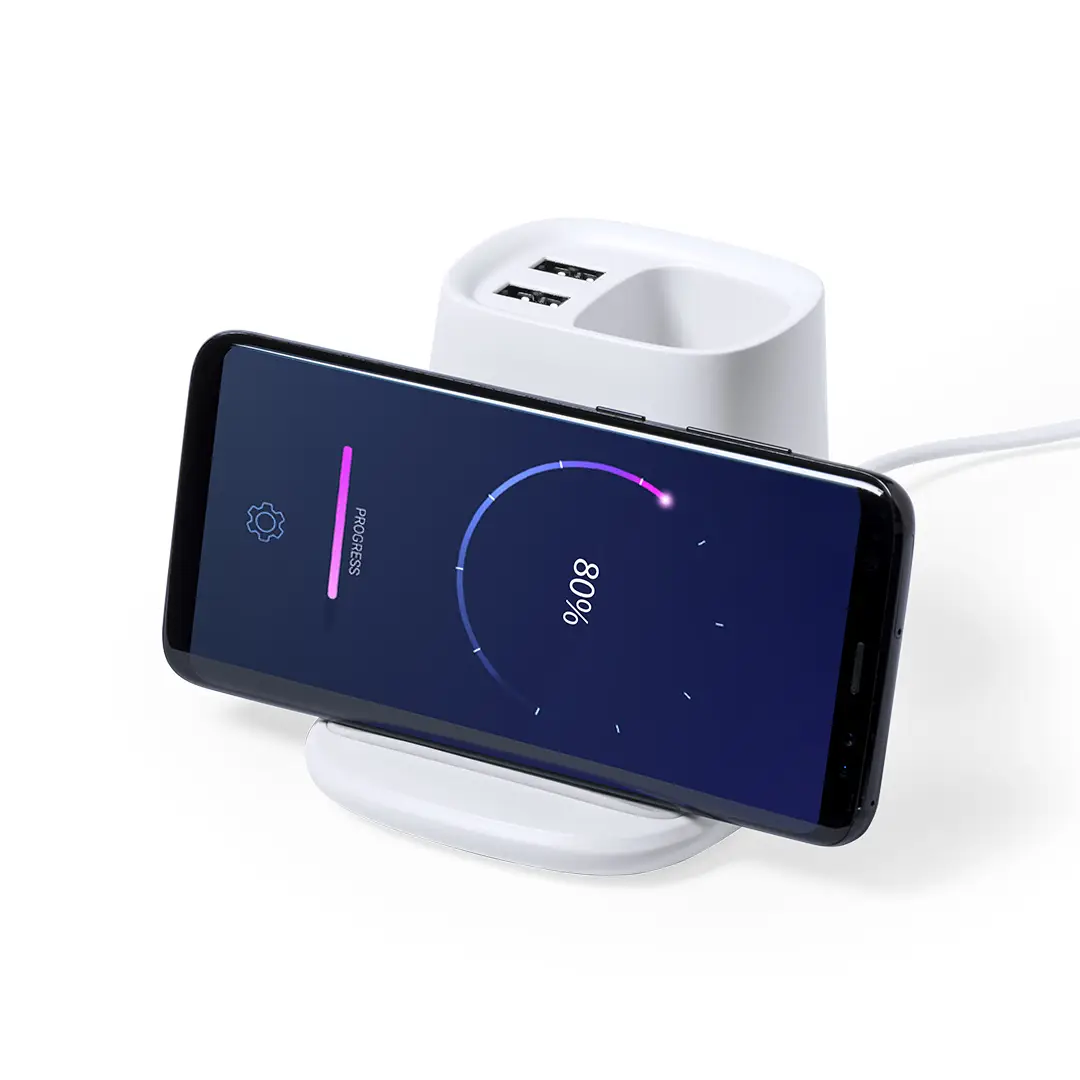 Cargador Inalámbrico 5W. 2 Salidas USB. 1 Puerto USB 2.0