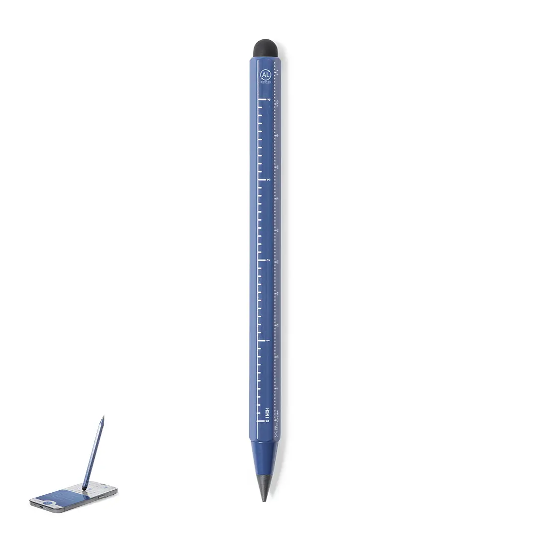 Lápiz eterno multifunción fabricado en aluminio reciclado. Funciones lápiz, puntero táctil y regla, con medidas en centímetros (11) y pulgadas (4). Reutilizable y con escritura infinita, para así usar siempre el mismo lápiz y no generar residuos. Con distintivo aluminio reciclado y disponible en variada gama de colores.El aluminio reciclado es un material con posibilidades de reciclaje casi infinitas, sin perder sus propiedades originales y consumiendo menos energía en este proceso.