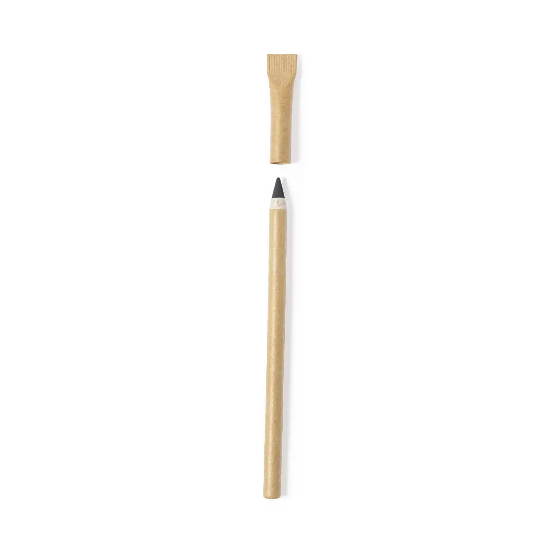 Lápiz eterno de línea nature con capucha. Fabricado en papel reciclado y con punta en caña de trigo, fomentando la utilización de materias primas naturales y reducir las emisiones contaminantes. Reutilizable y con escritura infinita, para así usar siempre el mismo lápiz y no generar residuos.