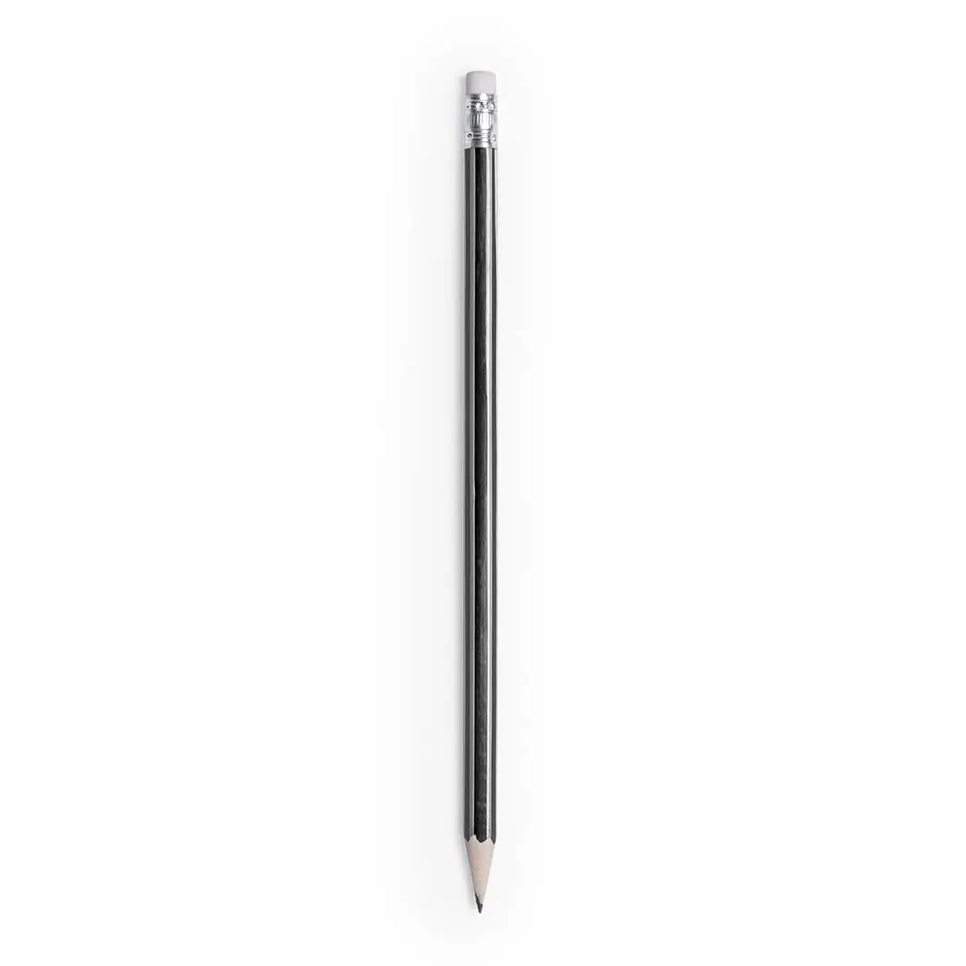 Lápiz de madera de acabado brillo. Cuerpo hexagonal y diseño bicolor, con goma de borrar en color blanco. Disponible en variada gama de colores, con mina negra y punta afilada.