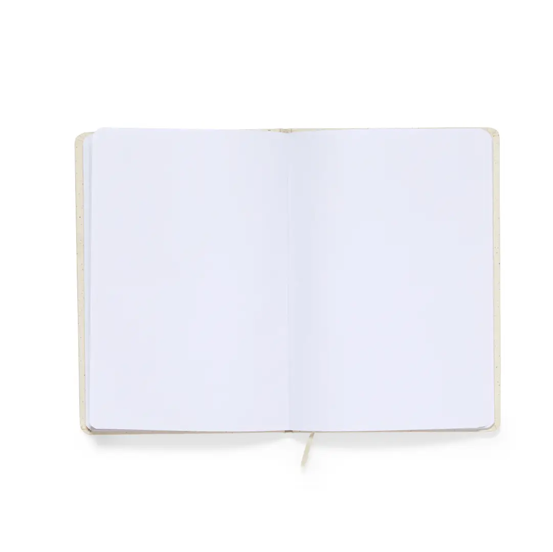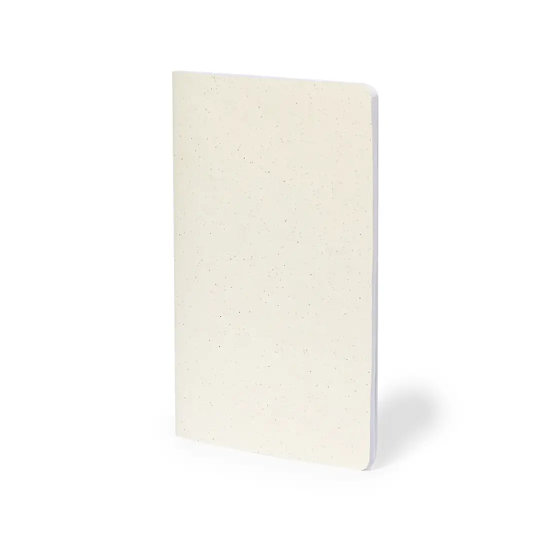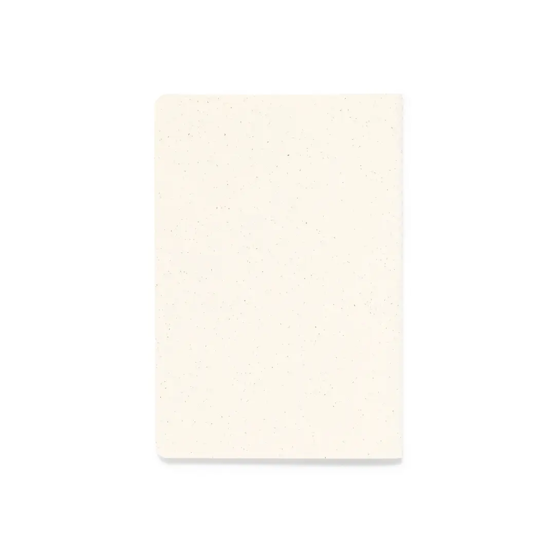 Libreta con tapas fabricadas en cartón reciclado y acabado cosido a juego en el lomo. Interior con 60 hojas blancas lisas. Presentado en bolsa individual reciclada.