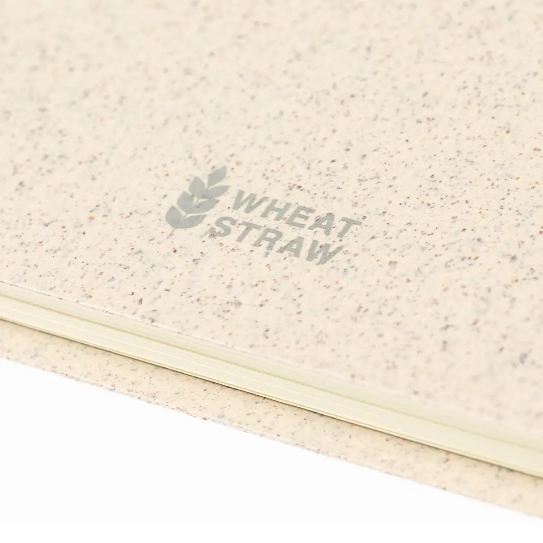 Innovadora libreta de anillas de línea nature, con tapas fabricadas en caña de trigo, para así fomentar la utilización de materias primas naturales y reducir las emisiones contaminantes. Con distintivo Wheat Straw y 80 hojas interiores lisas.