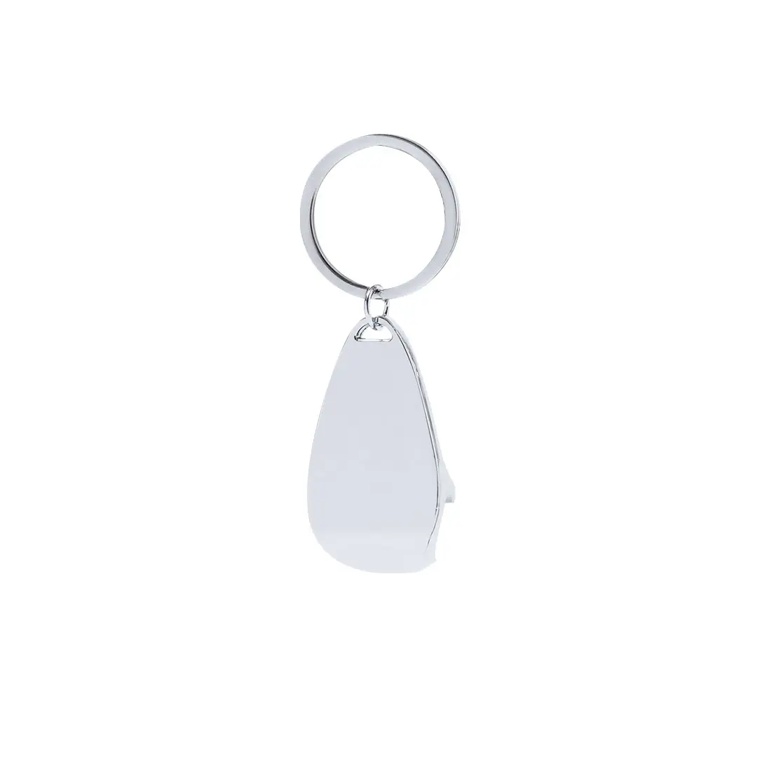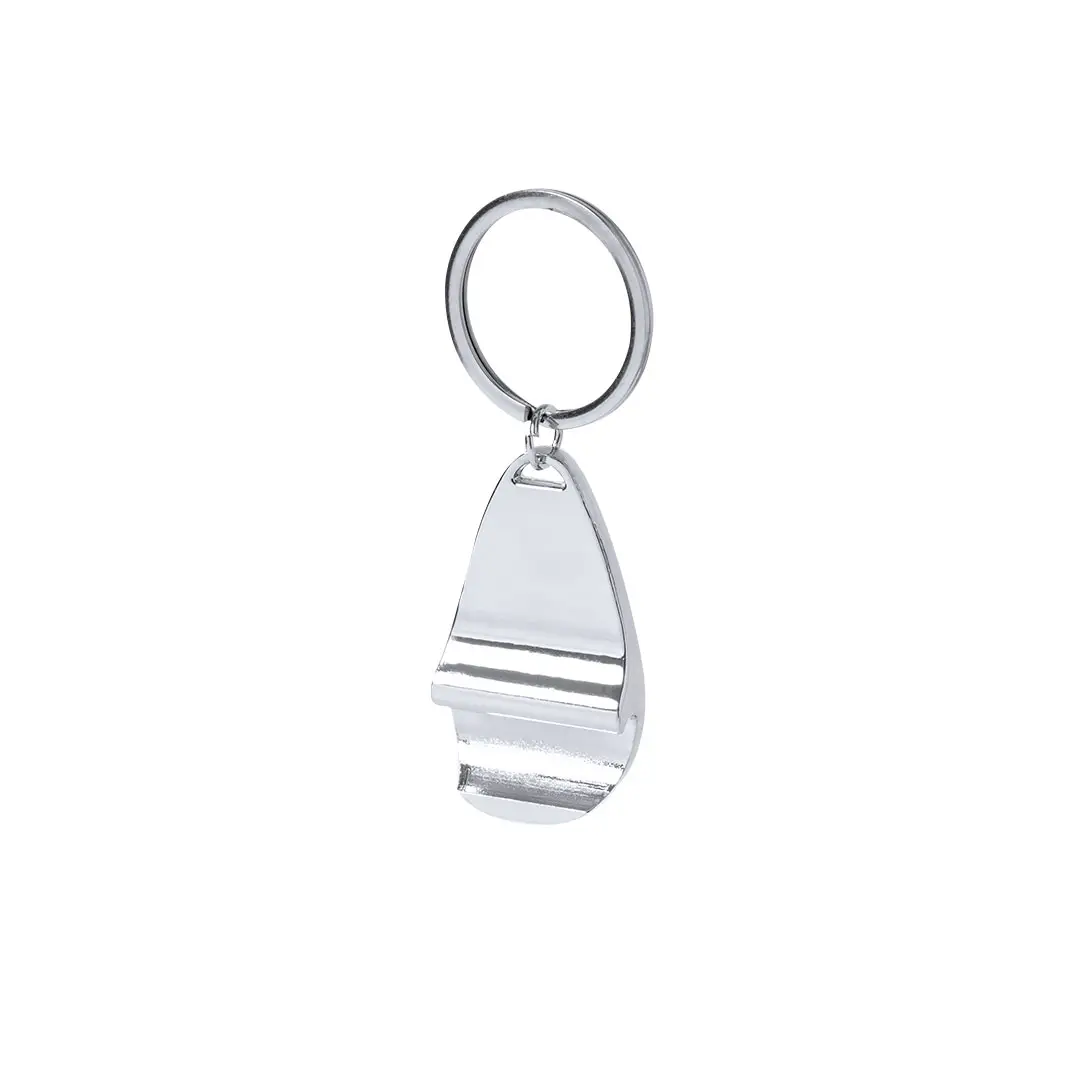 Llavero abridor de metal en acabado.