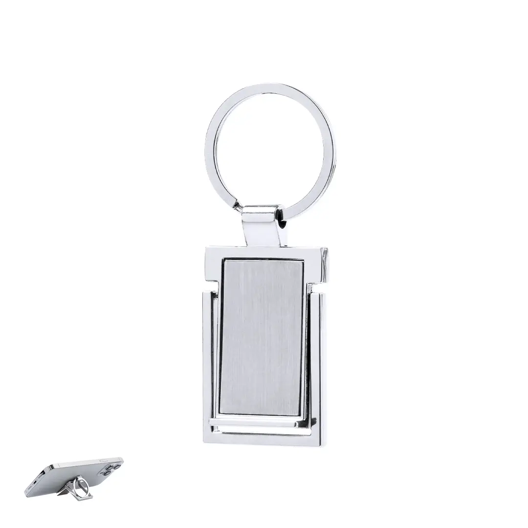 Llavero soporte para smartphone fabricado en metal.