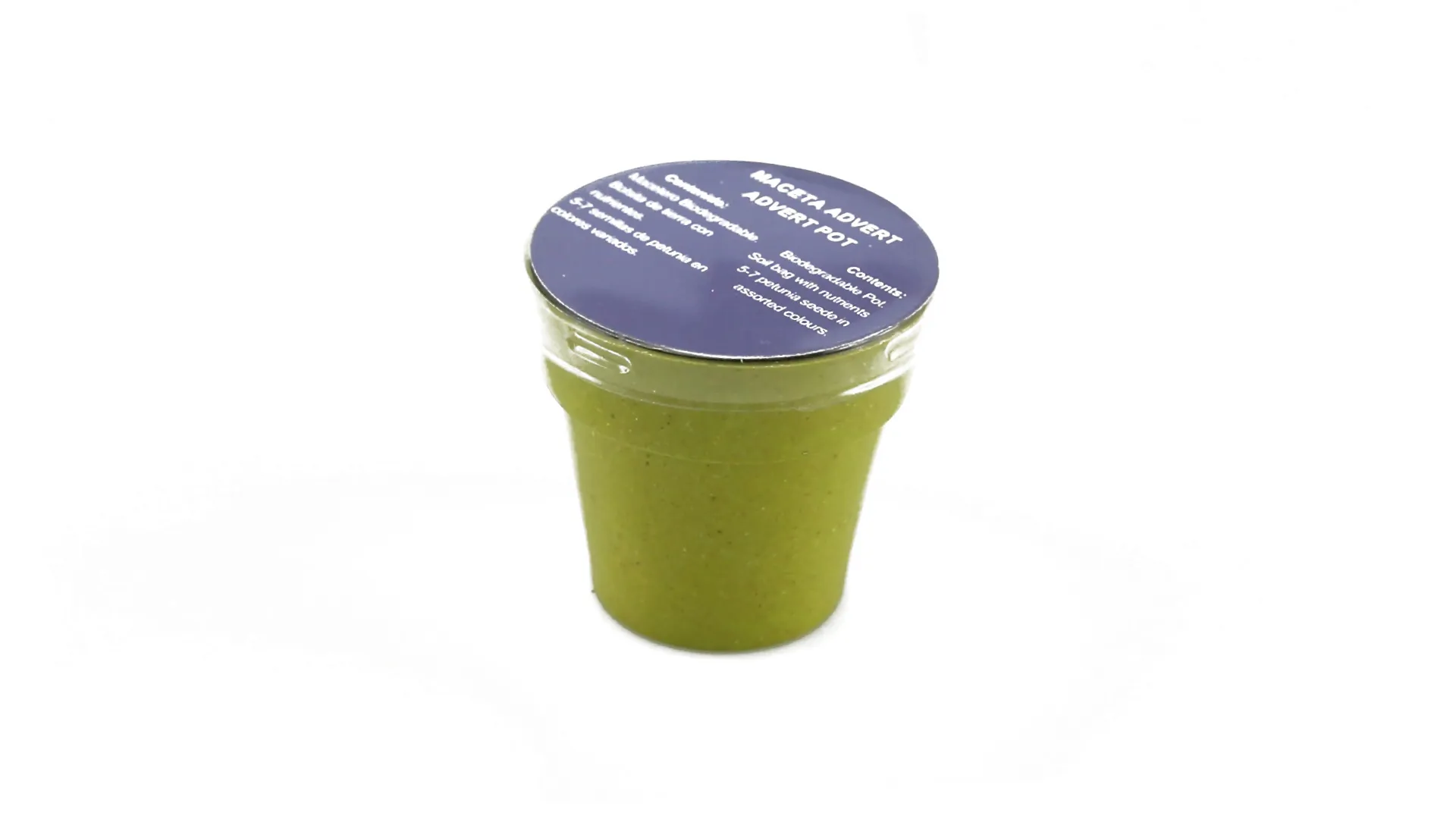 Macetas con semillas de Petunia en macetero de línea nature y en variados colores. Con 5-8 semillas y bolsita de sustrato de crecimiento.