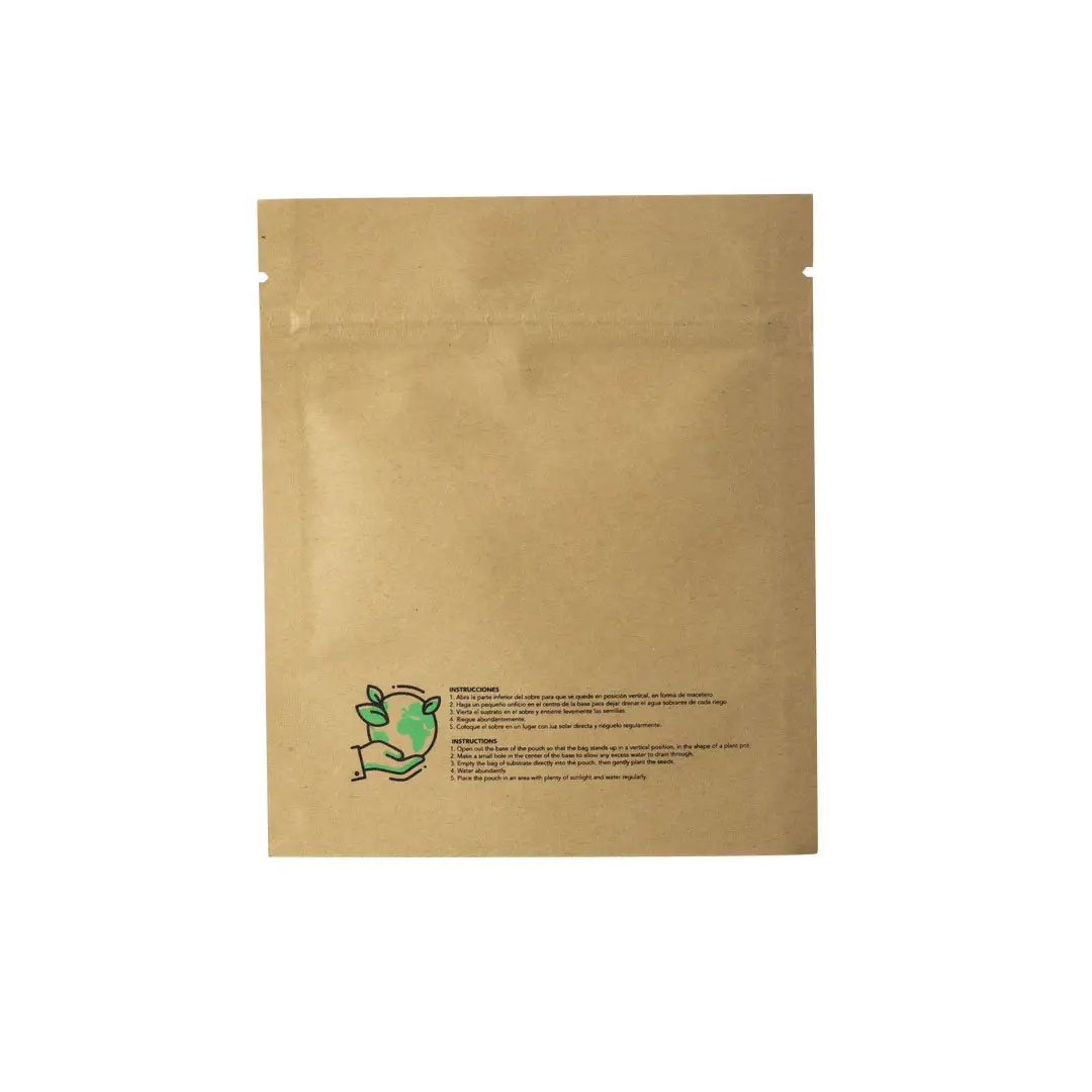 Maceta de línea nature en sobre de papel. Con 5-8 semillas de petunia y bolsita con sustrato de crecimiento.