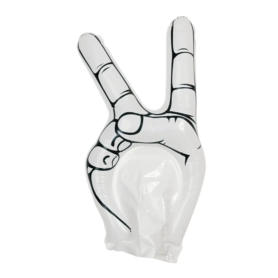 Divertida mano de animación victoria en resistente material LDPE de vivos colores. Reutilizable y con válvula de inflado incluida.