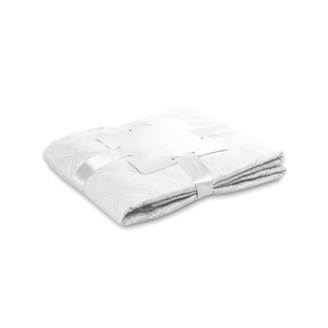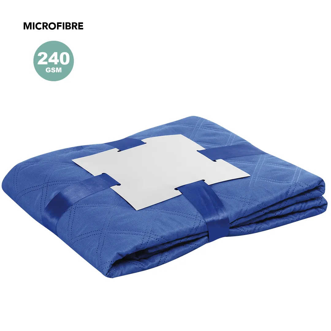 Manta de 130x160cm en variada gama de vivos colores en microfibra de 240g/m2. Presentada en cartón de color plateado y cinta lazo a juego en suave poliéster.