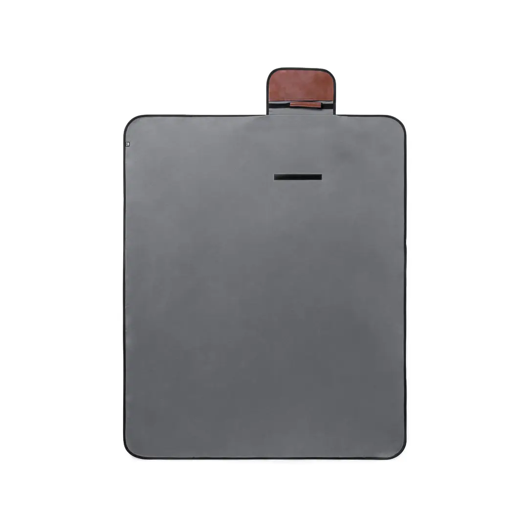 Manta de picnic premium fabricada en resistente poliéster RPET de 160g/m2 y acabado en gris. Plegable y con cierre de velcro solapa y asa en cuero reciclado con ribetes reforzados. En tamaño 120×150 cm, con base aislante en PEVA y lado para sentarse de agradable tacto. De fácil plegado y tamaño compacto, con distintivo cuero reciclado en la solapa. El material RPET se elabora a partir de plástico reciclado, para así fomentar la reutilización de residuos plásticos y ayudar a la sostenibilidad del planeta.El cuero reciclado rescata las fibras desechadas en los procesos de fabricación del cuero, minimizando el desperdicio de material, contribuyendo a reducir el impacto ambiental y manteniendo a la vez sus propiedades originales.