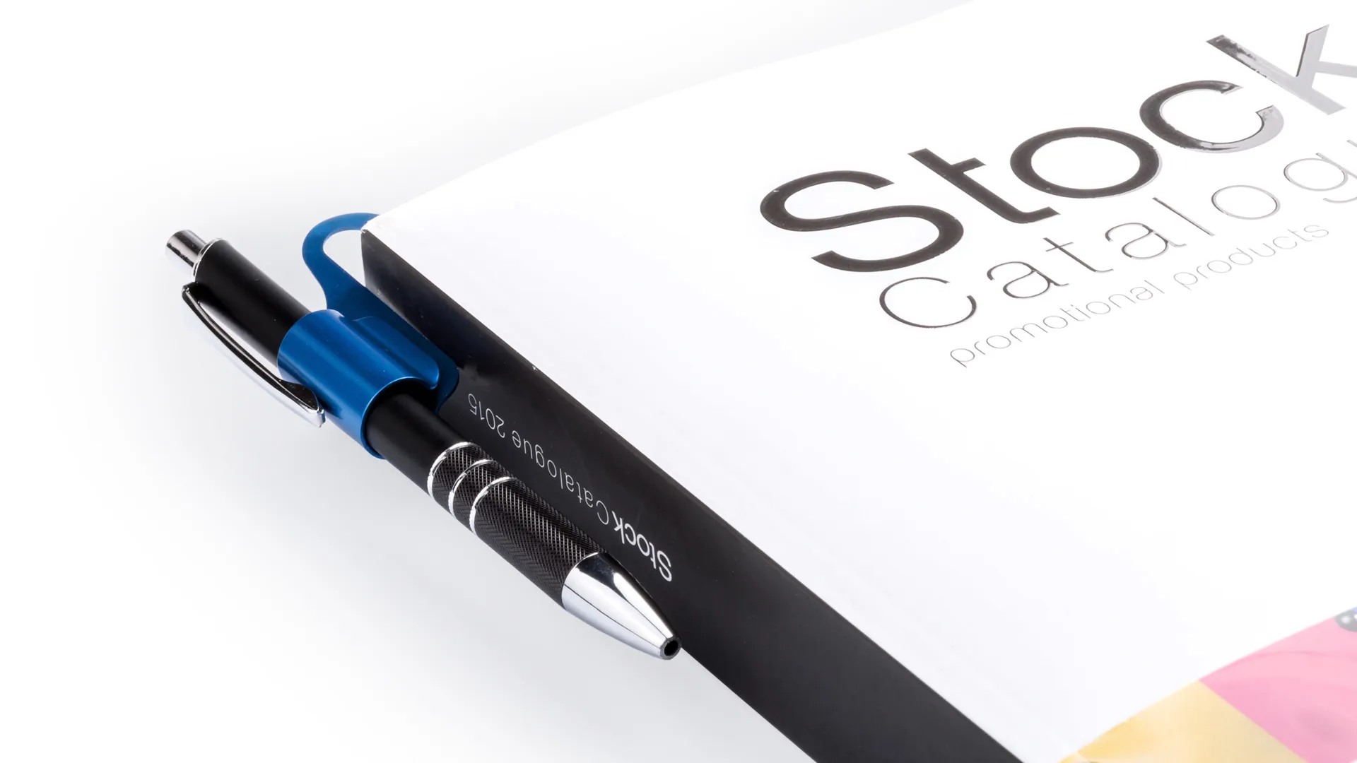 Original marcapáginas de acabado en aluminio brillante, en variados colores y con soporte para bolígrafo integrado. Presentado en funda de PVC.