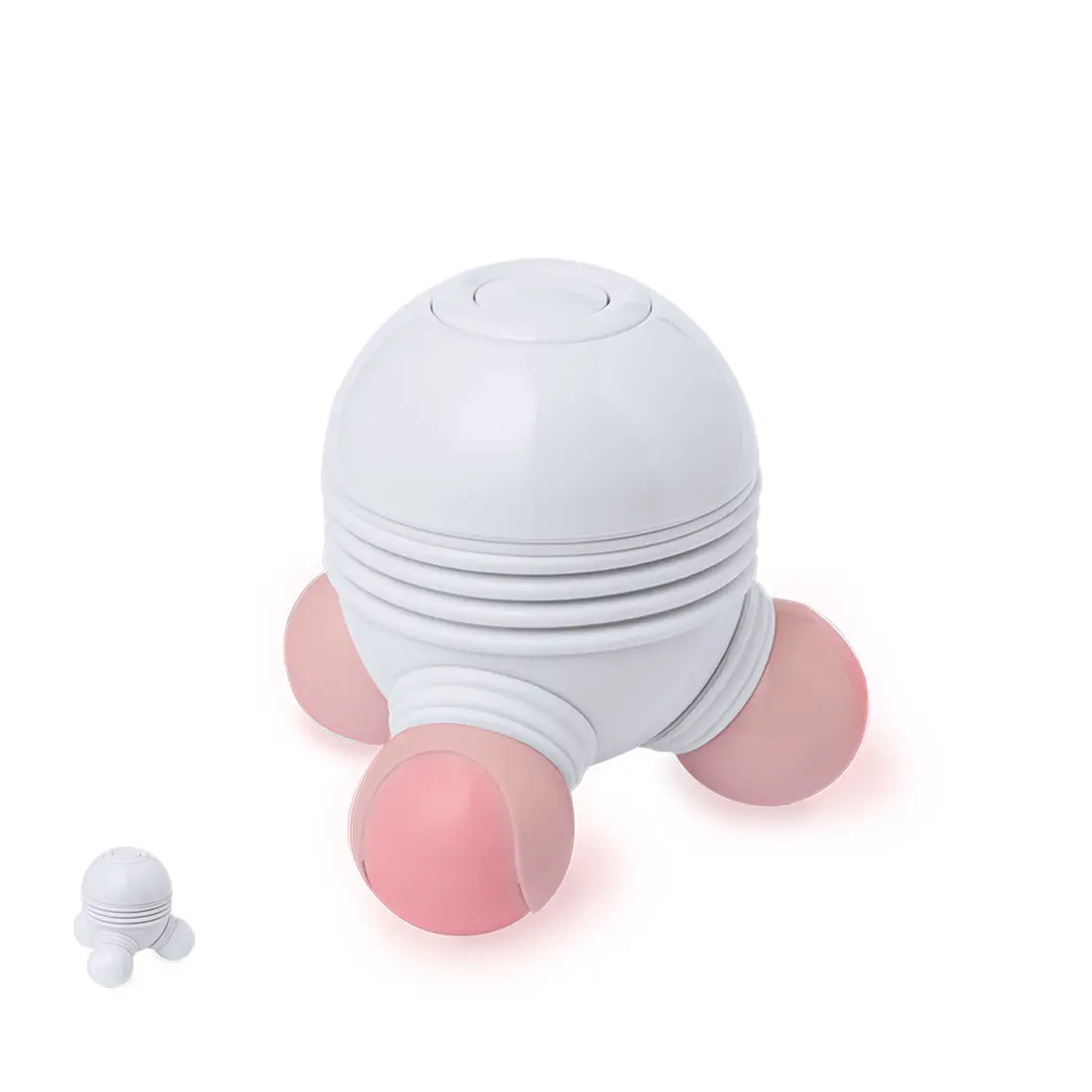 Masajeador de mano eléctrico. Excelente confort por sus propiedades de vibración, ofreciendo una experiencia de relajación y alivio. Su diseño se adapta fácilmente a la mano para un agarre firme, con luces indicadoras de funcionamiento dentro de las bolas. Compacto y portátil, alimentado por 3 pilas AAA (no incluidas). Presentado en una caja de diseño kraft.