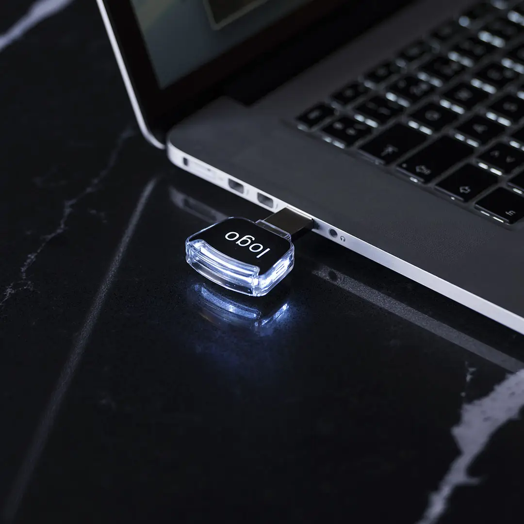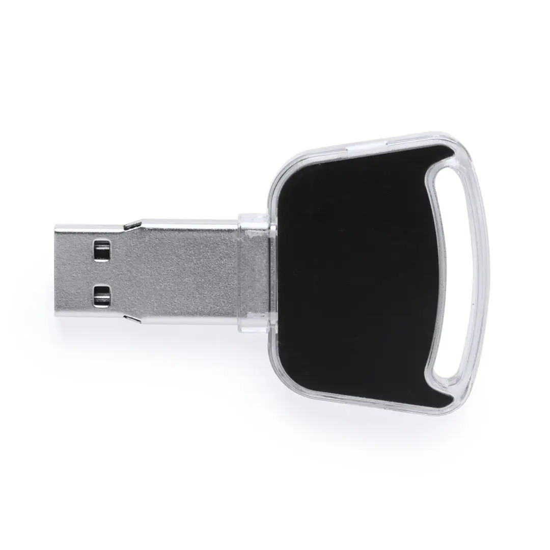 Memoria USB de 16GB de capacidad. De innovador diseño automovilístico, con luz led interior y cuerpo especialmente diseñado para marcaje en láser, iluminando así el logotipo. Presentada en estuche individual.